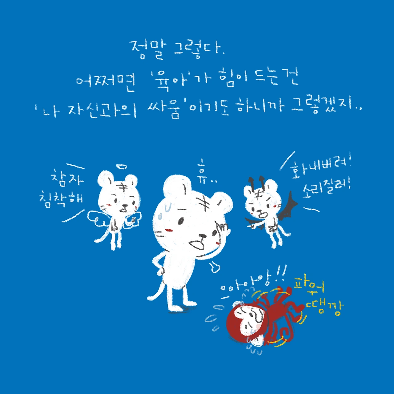 소띠 아빠, 호랑이띠 엄마, 원숭이띠 딸, 돼지띠 아들. 소소한 육아와 일상 이야기를 그리고 있습니다.
