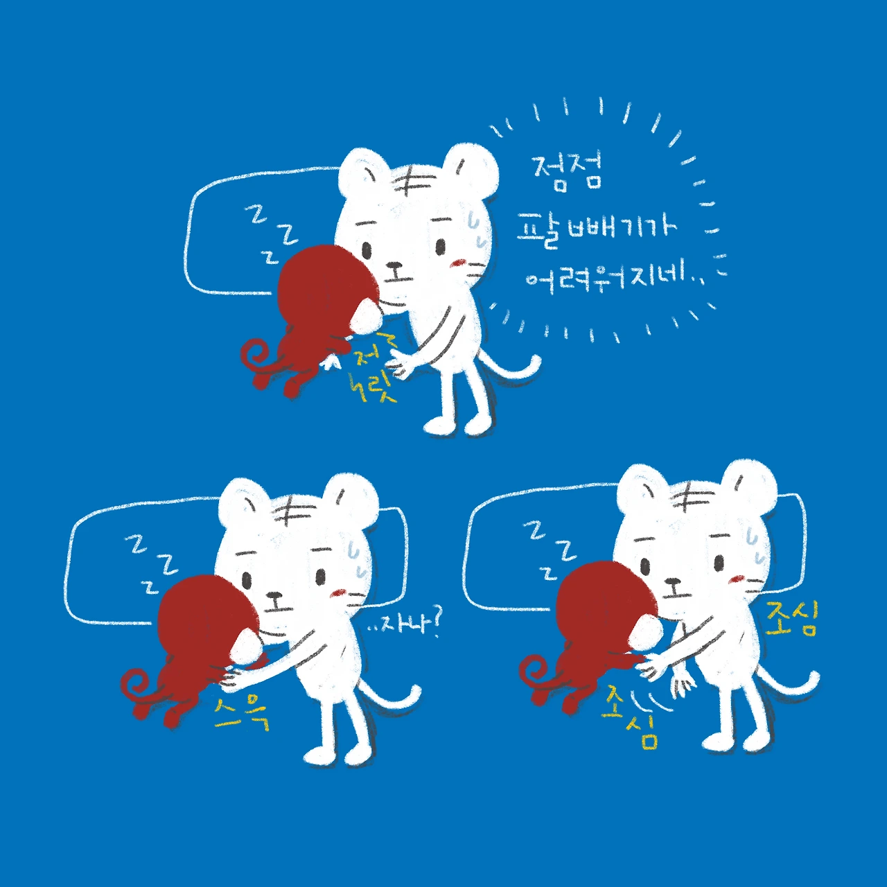 소띠 아빠, 호랑이띠 엄마, 원숭이띠 딸, 돼지띠 아들. 소소한 육아와 일상 이야기를 그리고 있습니다.