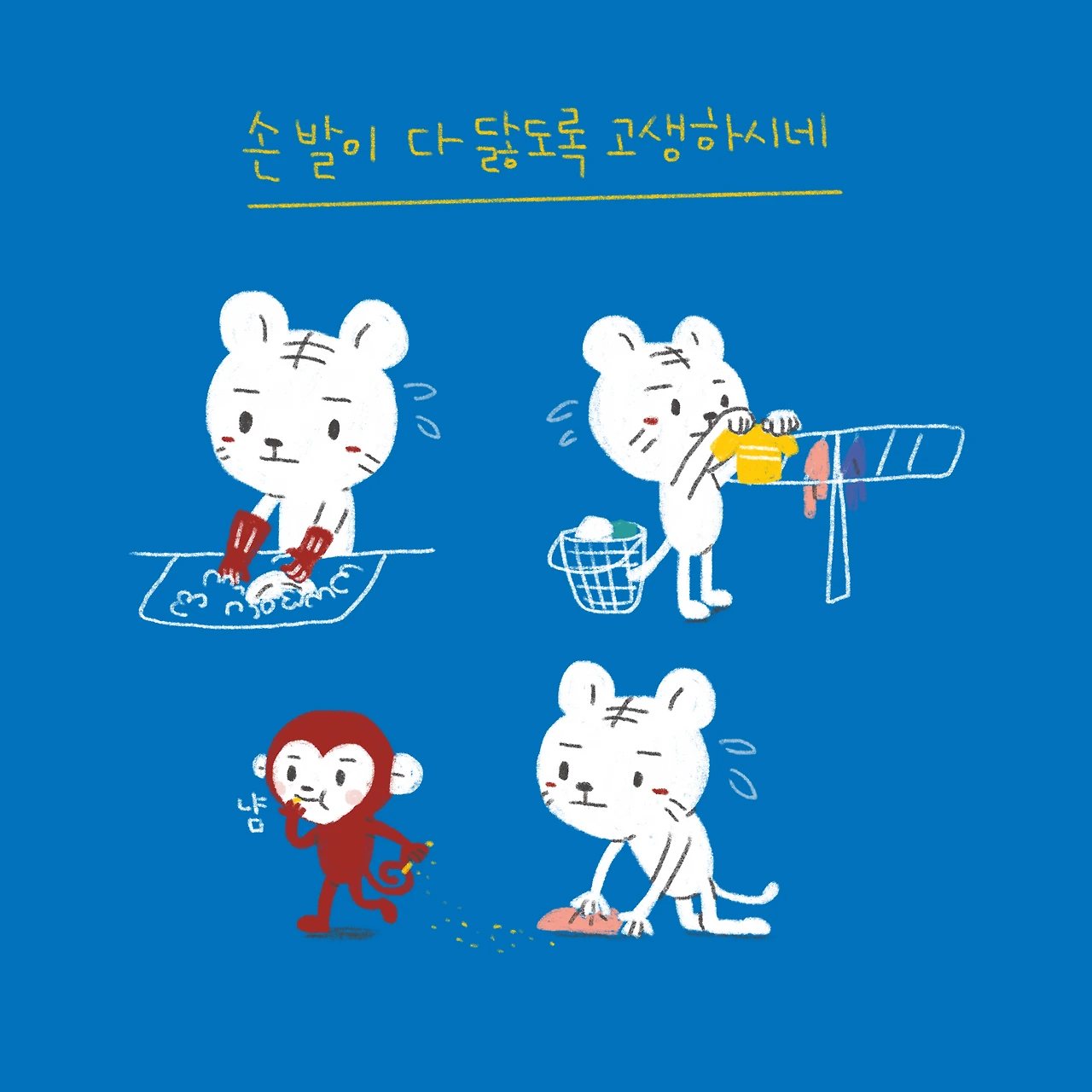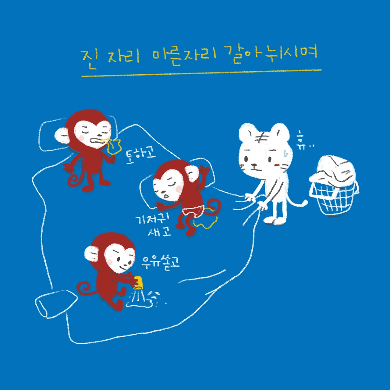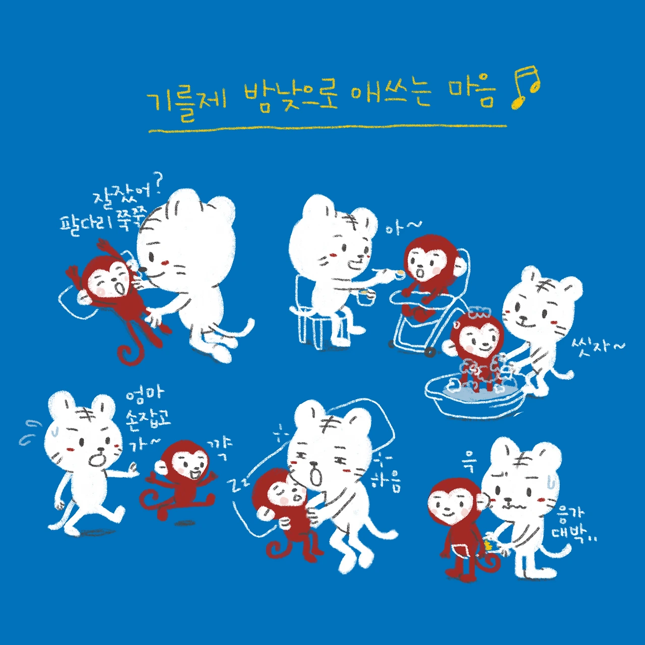 소띠 아빠, 호랑이띠 엄마, 원숭이띠 딸, 돼지띠 아들. 소소한 육아와 일상 이야기를 그리고 있습니다.