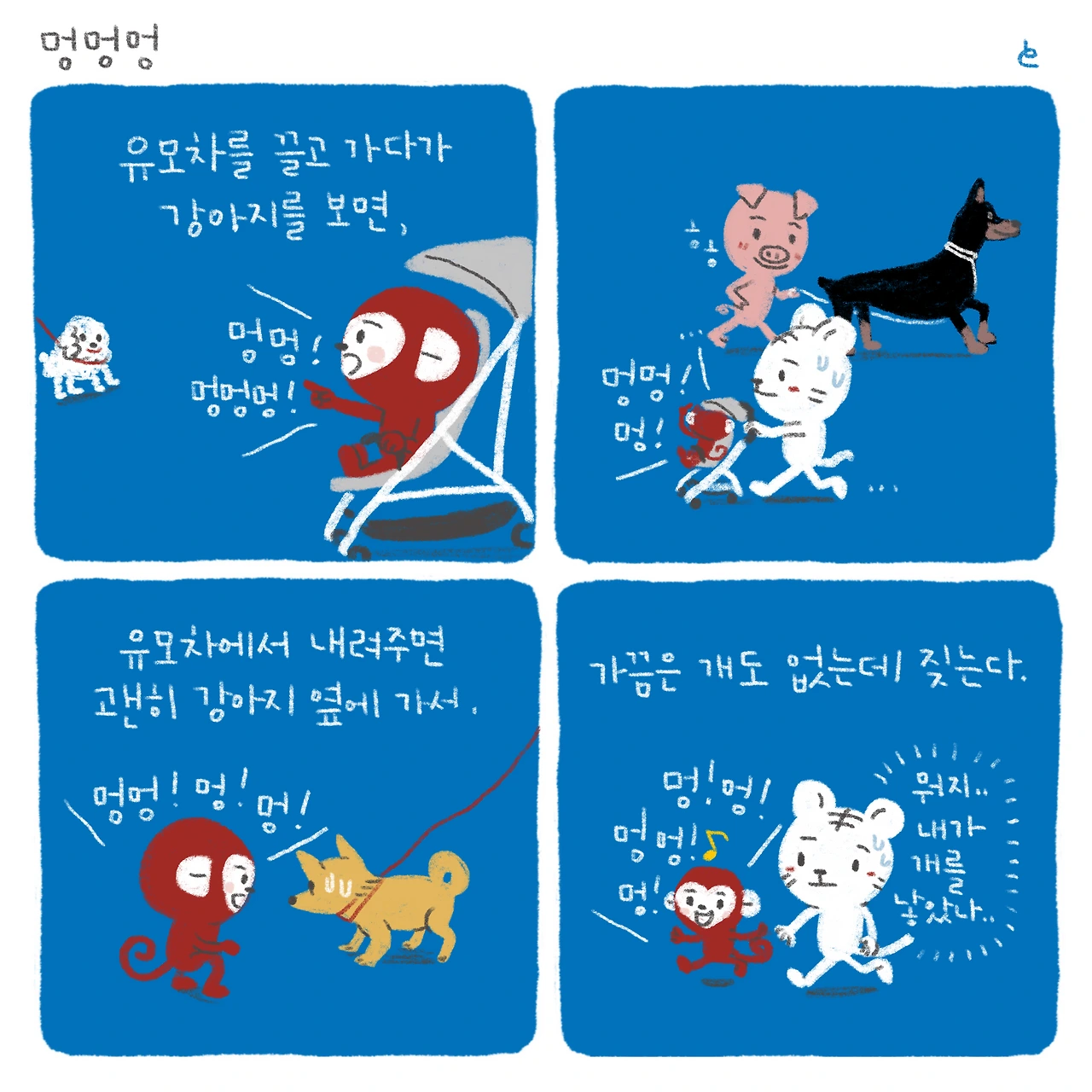 소띠 아빠, 호랑이띠 엄마, 원숭이띠 딸, 돼지띠 아들. 소소한 육아와 일상 이야기를 그리고 있습니다.