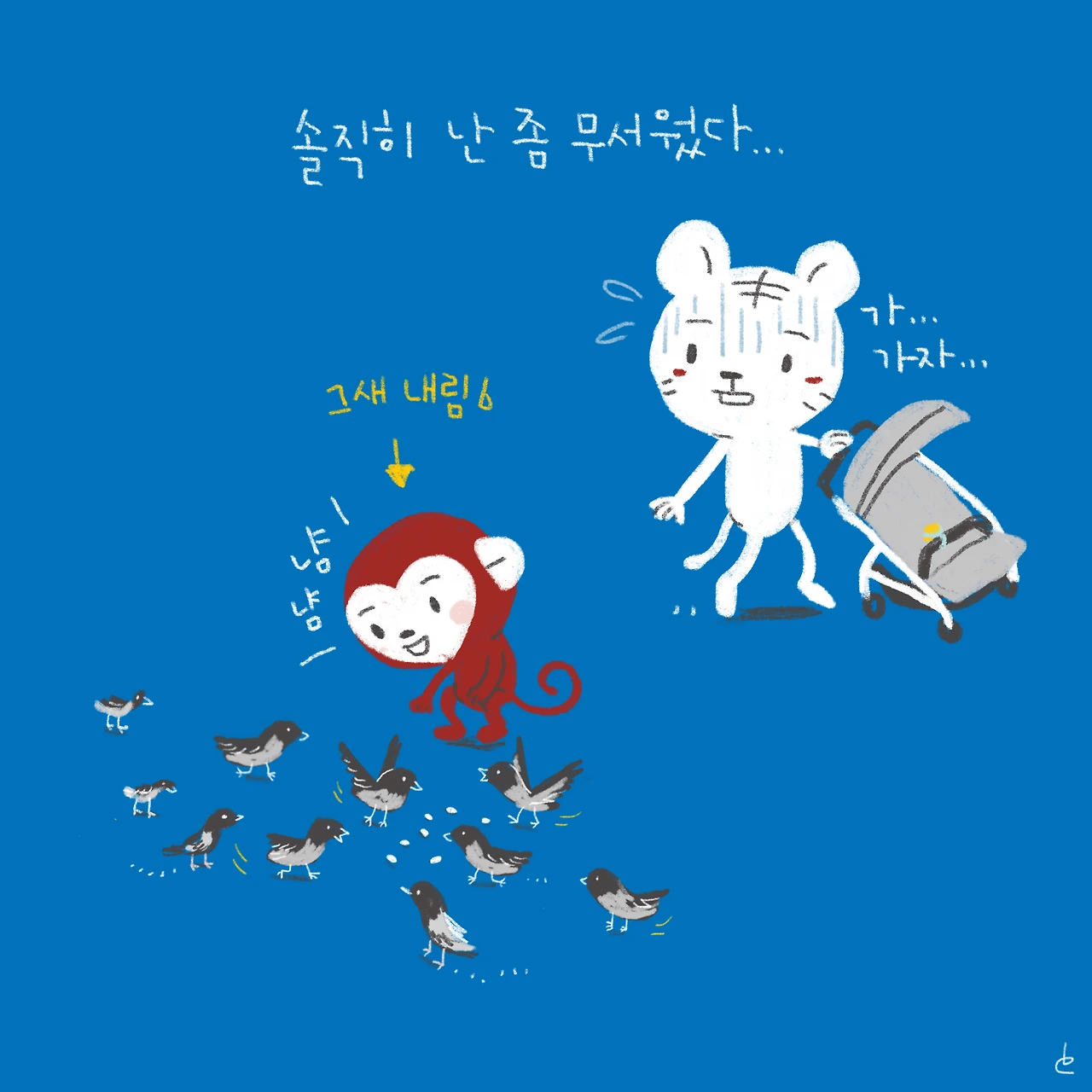 소띠 아빠, 호랑이띠 엄마, 원숭이띠 딸, 돼지띠 아들. 소소한 육아와 일상 이야기를 그리고 있습니다.
