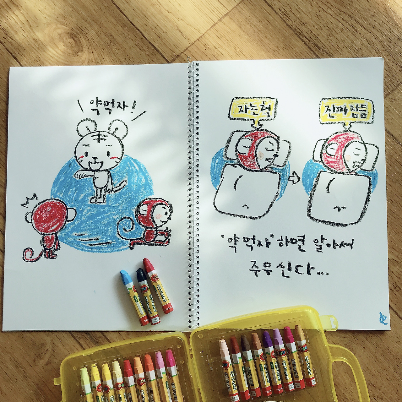 오늘의 일기는 친정집에서 아기 오일파스텔로 그렸다.(아이패드 놓고옴)
