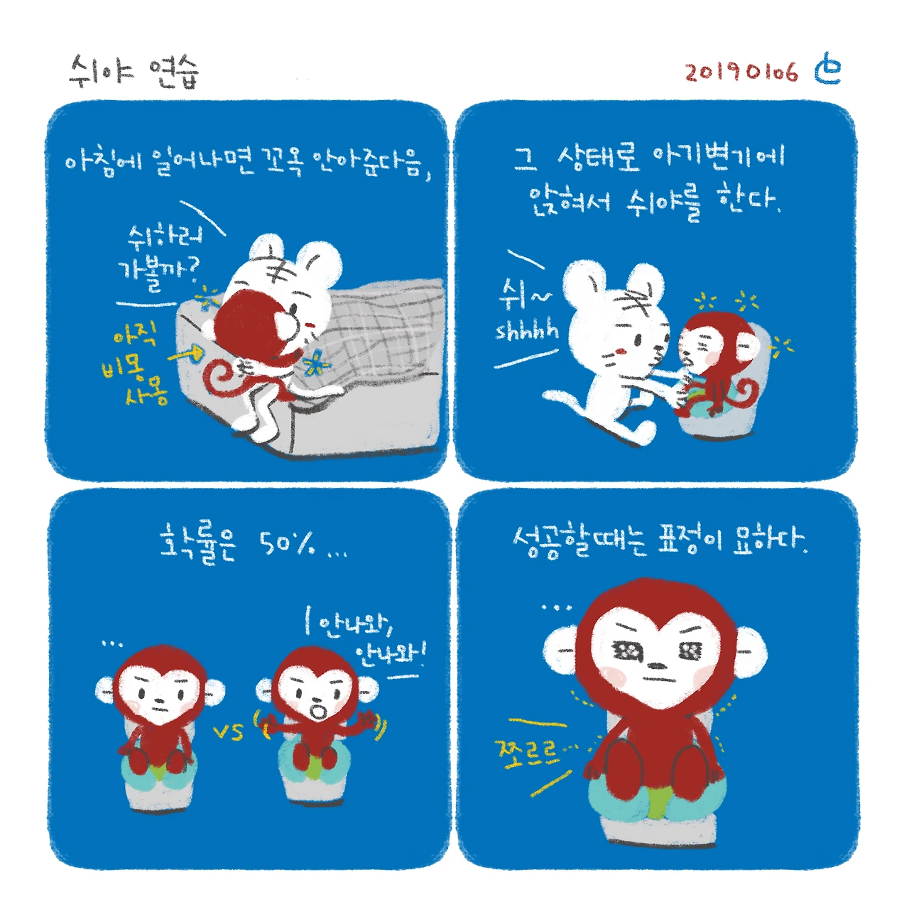 가끔 일부러 내가 먼저 ‘어, 엄마 슉슉이 변기에 쉬해야지!’ 이러고 달려가는 척하면, ‘아니야, 내꺼야! 슉슉이도 쉬해야지~’ 이러면서 변기에 후다닥 달려가 앉는데, 이런 심리를 잘 이용하면 좋은 것 같다.