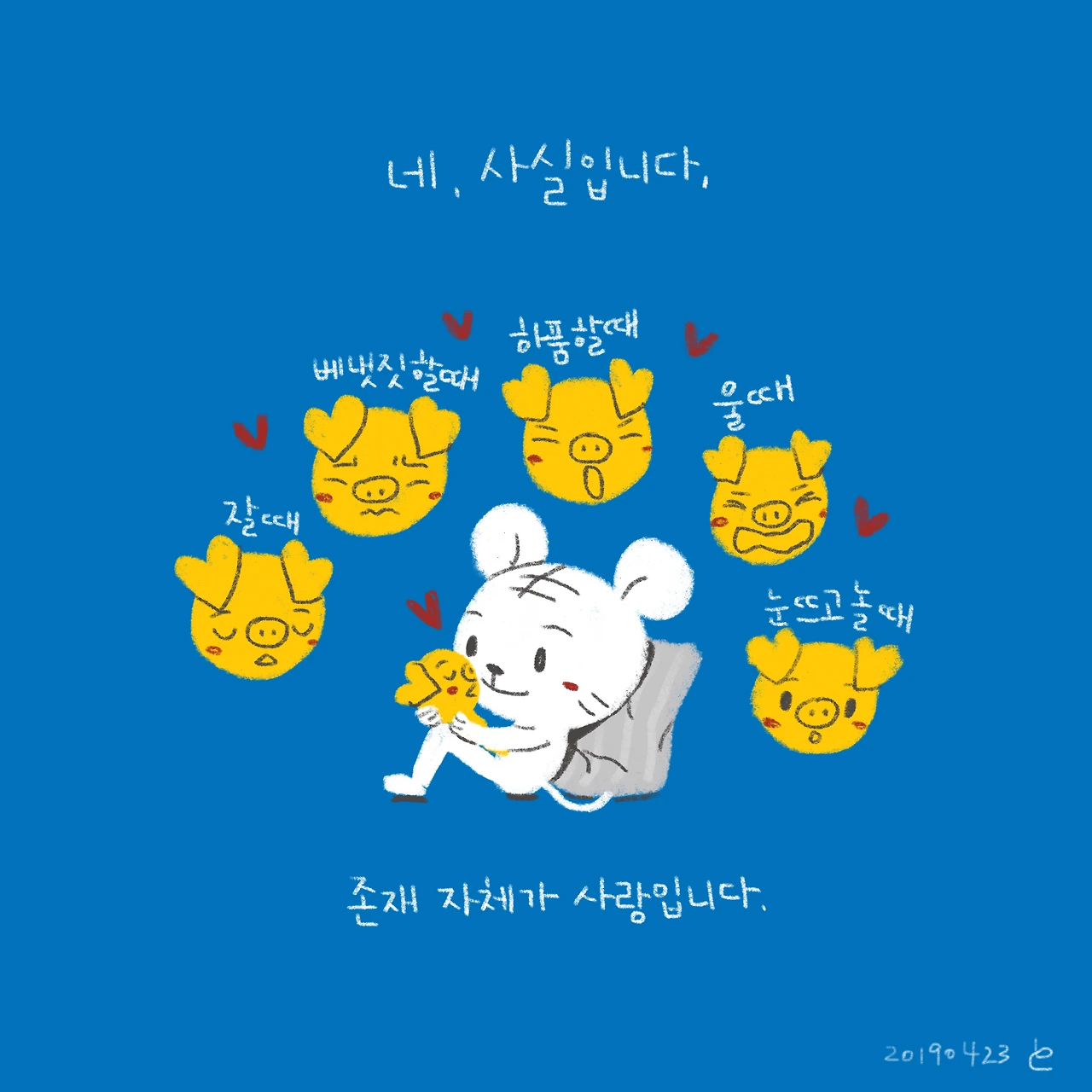 소띠 아빠, 호랑이띠 엄마, 원숭이띠 딸, 돼지띠 아들. 소소한 육아와 일상 이야기를 그리고 있습니다.