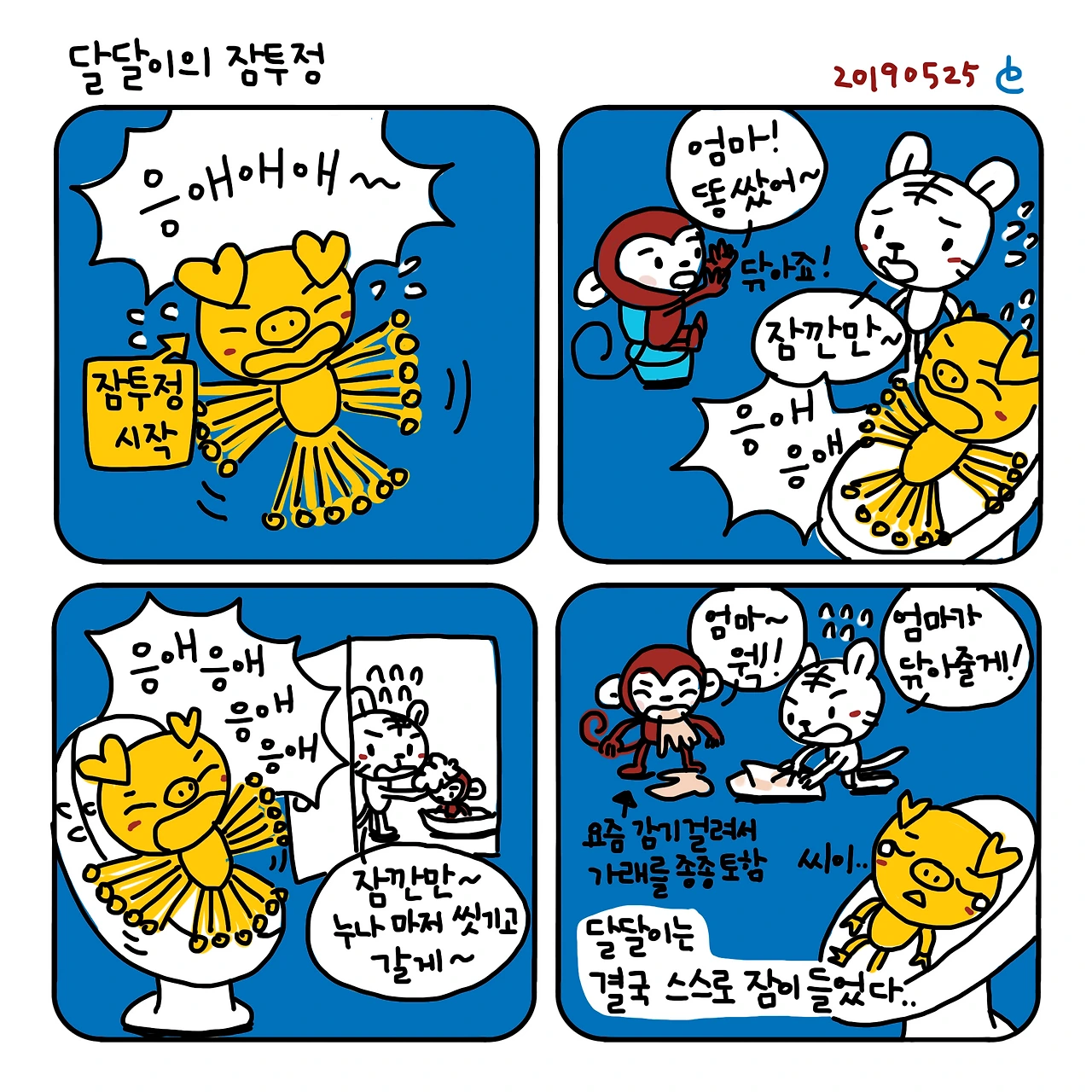 둘째는 수면교육을 굳이 따로 안해도 되는 것 같다.. 슬프지만 사실이네..ㅠㅠ-#블루챔버 #bluechamber #육아툰 #육아일기 #황금돼지띠맘 #둘째 #수면교육 #잠투정 #달달이의잠투정 #생후59일