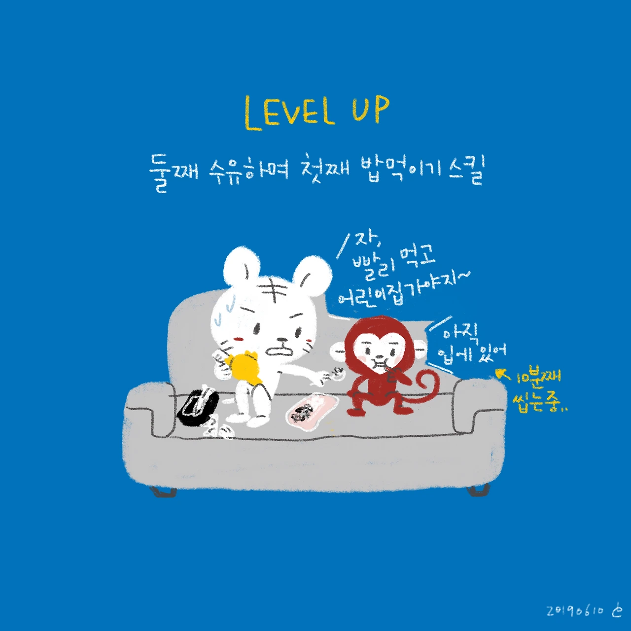전쟁같은 등원시간..요즘 수유 정체기인지 둘째 달달이의 먹는 양이 잘 안늘고 한번 먹을때 오래 먹어서, 아침에 슉슉이 먹이고 옷입힐 시간이 부족해졌다.덕분에 나의 육아스킬만 업그레이드 되는 듯.월요일 아침은 육아맘에게도 참 바쁜 요일이다..-#블루챔버 #bluechamber #육아일기 #육아툰 #남매맘 #붉은원숭이띠맘 #황금돼지띠맘 #32개월아기 #LevelUp