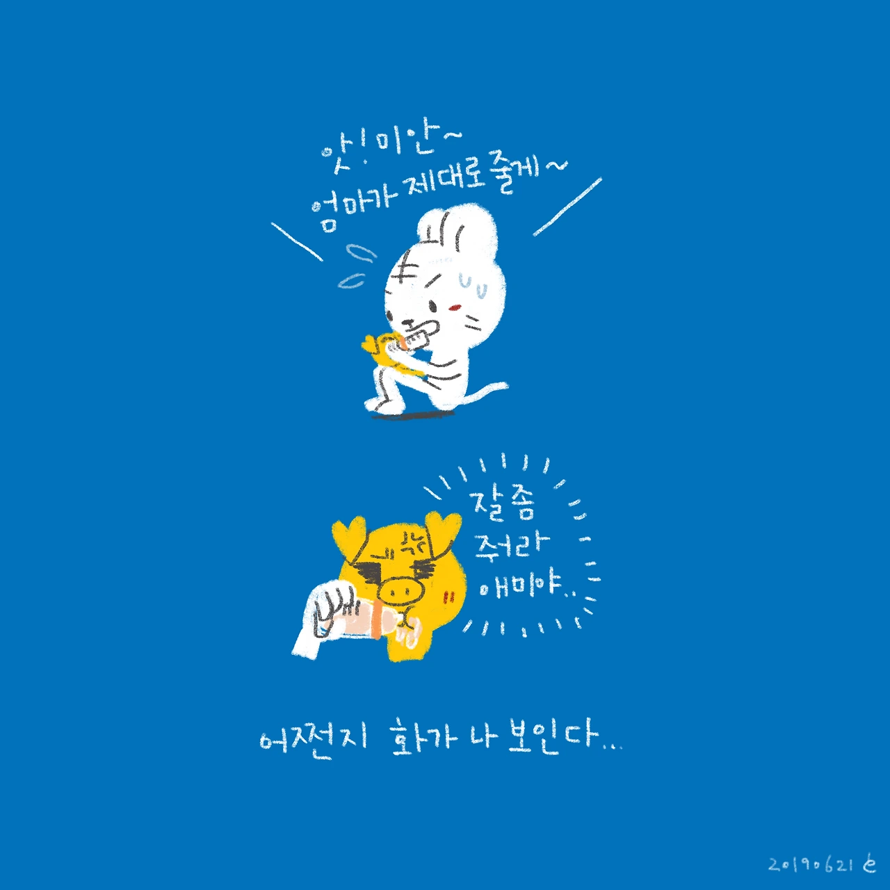 #블루챔버 #bluechamber #일상툰 #육아툰 #육아일기 #남매맘 #황금돼지띠아기 #생후86일 #수유하며핸드폰게임하기