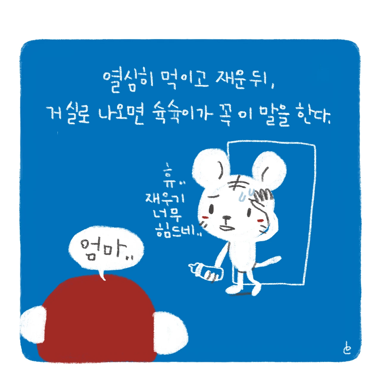 소띠 아빠, 호랑이띠 엄마, 원숭이띠 딸, 돼지띠 아들. 소소한 육아와 일상 이야기를 그리고 있습니다.