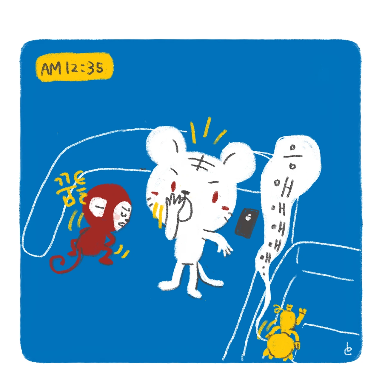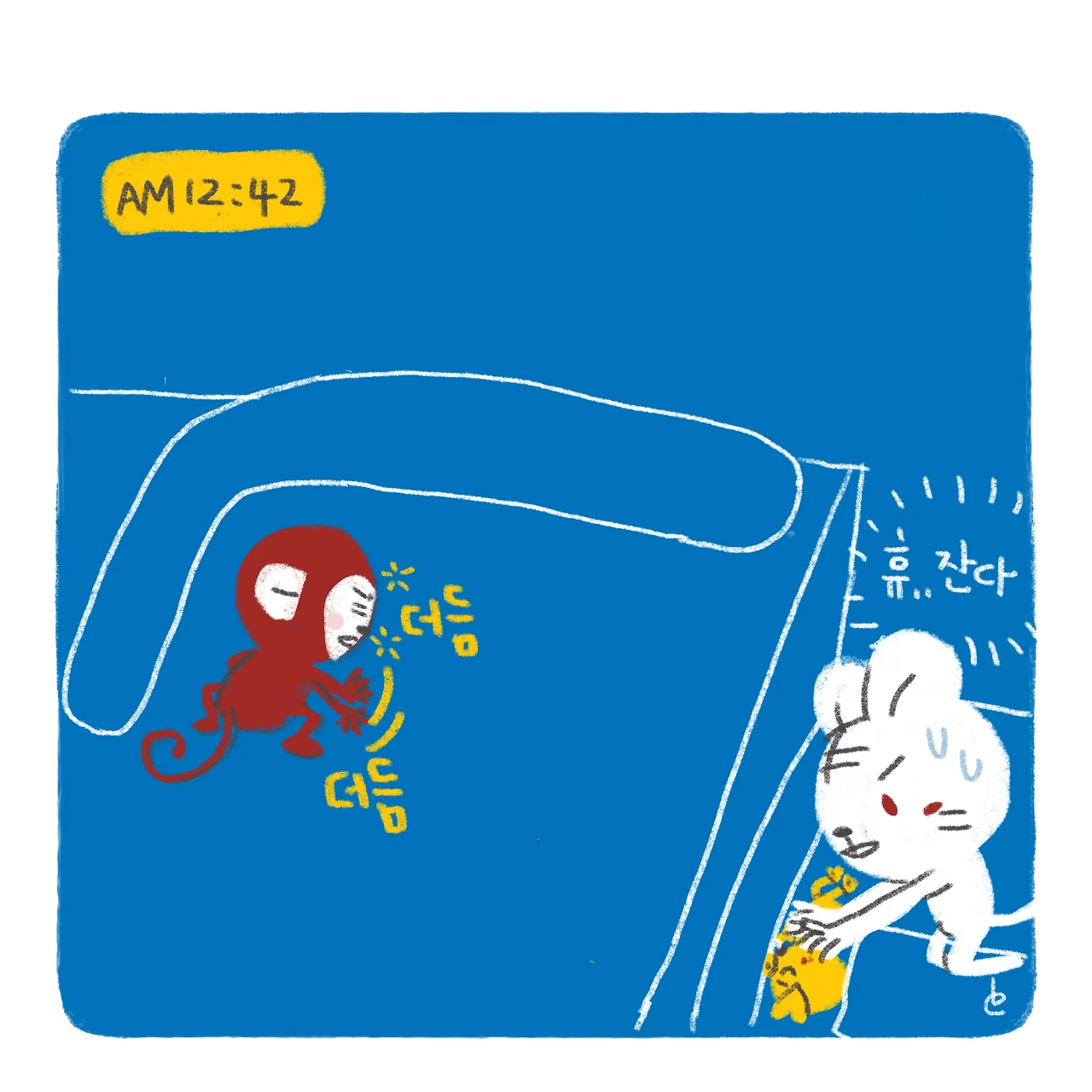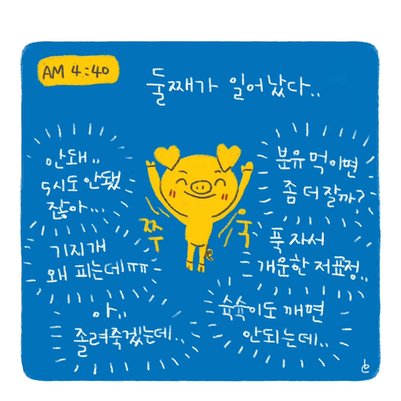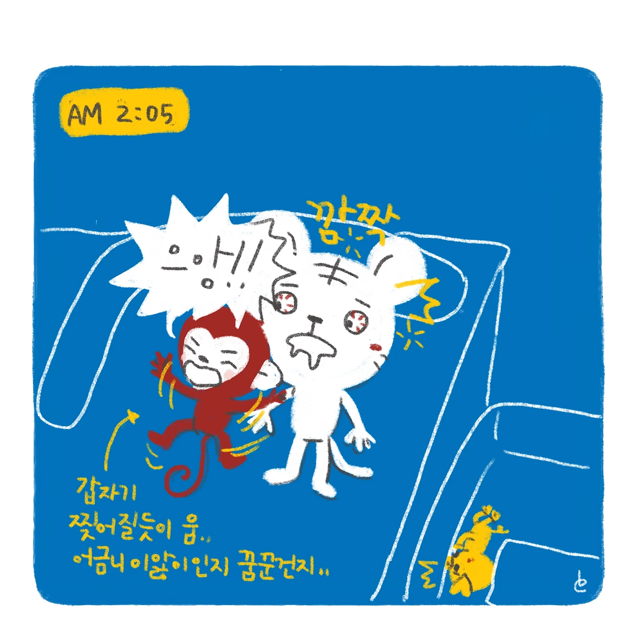 한명이 깨면 연쇄작용으로 다른 한명도 깨니 정말 난 편히 잘 수가 없다.