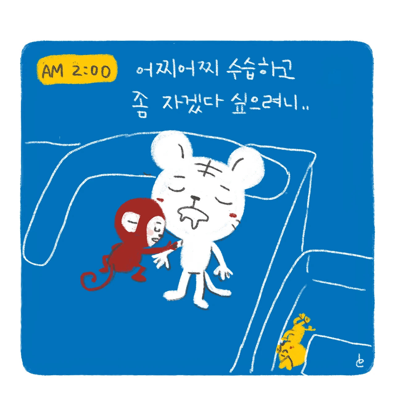 요 며칠 계속 이런 상태.. 지금도 넘 졸려서 거의 눈 감고 그렸다..ㅋㅋ