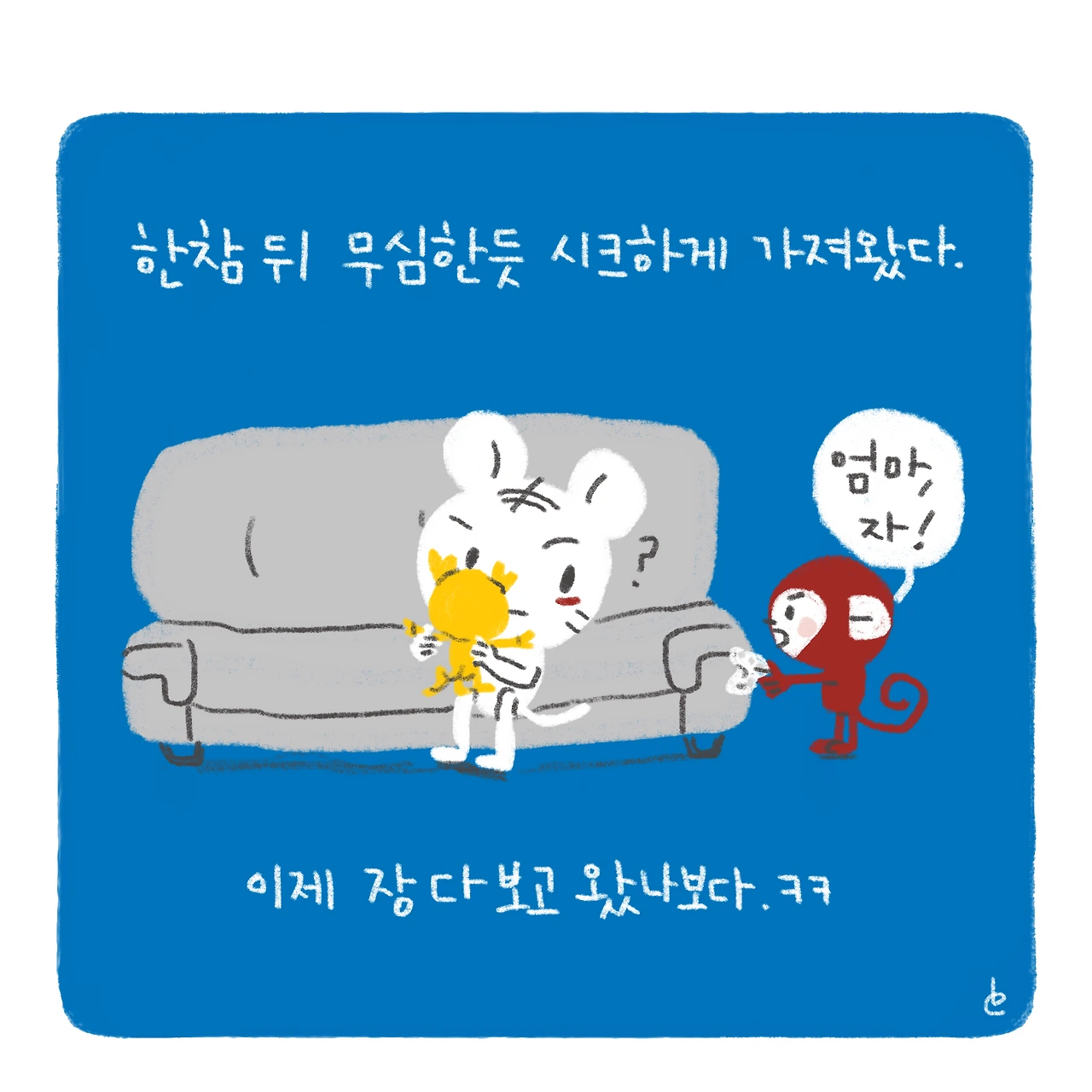 그래도 기억해준게 오늘의 포인트!-#블루챔버 #bluechamber #그림일기 #육아일기 #일상툰 #남매맘 #애둘맘 #5개월아기 #생후156일 #34개월아기 #난바빠