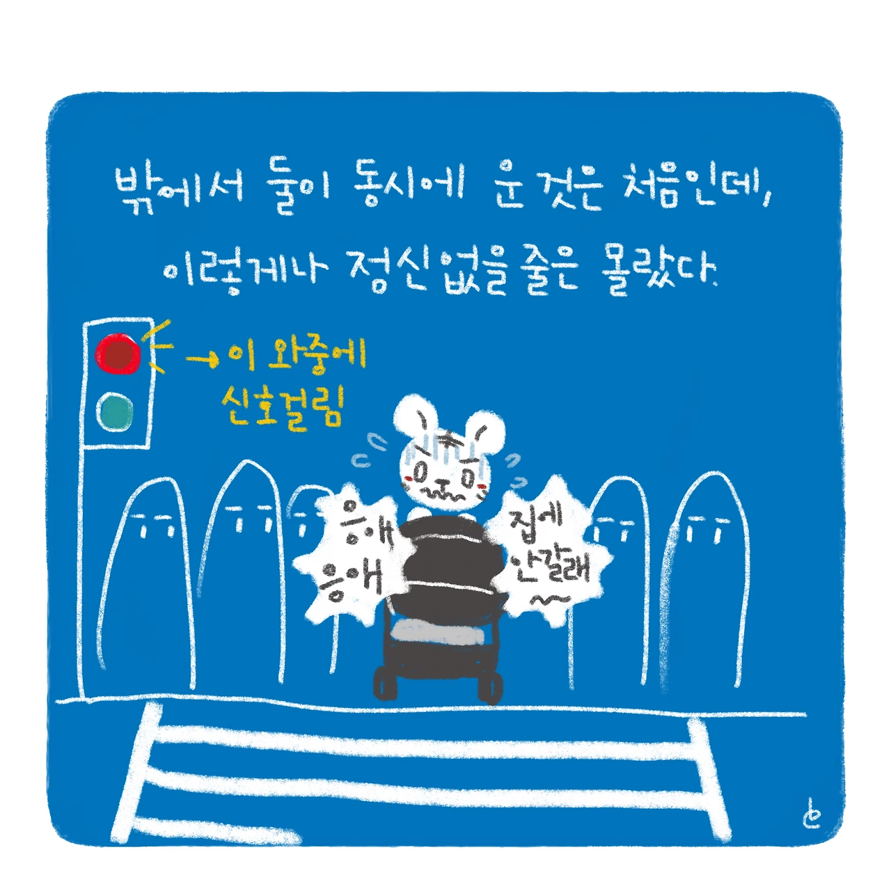 엊그제 혼자 애 둘 데리고 외출했다가, 다신 너네랑 안나가! 했지만, 또 이쁜 모습 보면 다 잊혀져서 데리고 나가고 싶다..ㅋㅋㅋ-#블루챔버 #bluechamber #그림일기 #육아일기 #일상툰 #남매맘 #애둘맘 #5개월아기 #35개월아기 #천사와악마는한끗차이