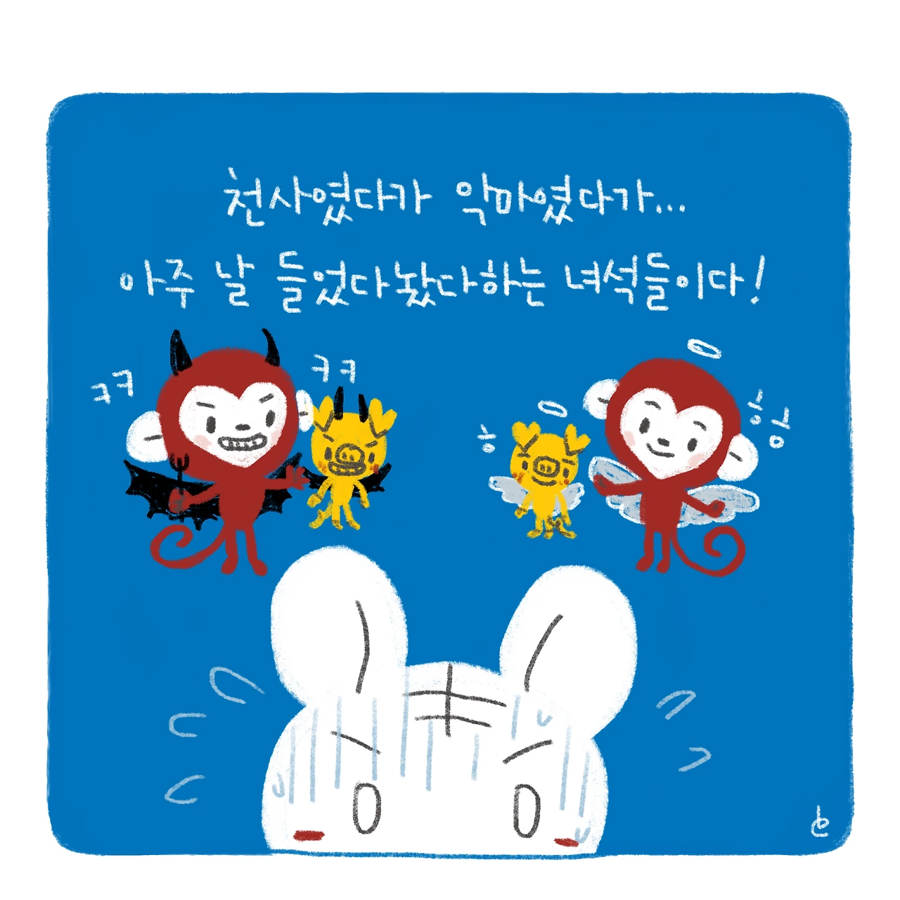 소띠 아빠, 호랑이띠 엄마, 원숭이띠 딸, 돼지띠 아들. 소소한 육아와 일상 이야기를 그리고 있습니다.