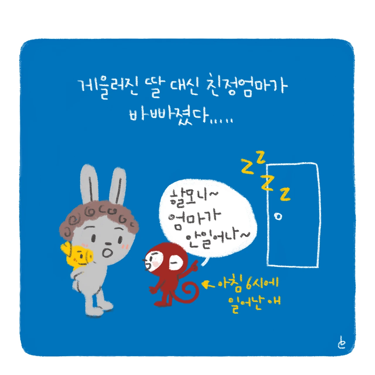 #블루챔버 #bluechamber #그림일기 #육아일기 #일상툰 #남매맘 #애둘맘 #5개월아기 #35개월아기 #친정에서의아침