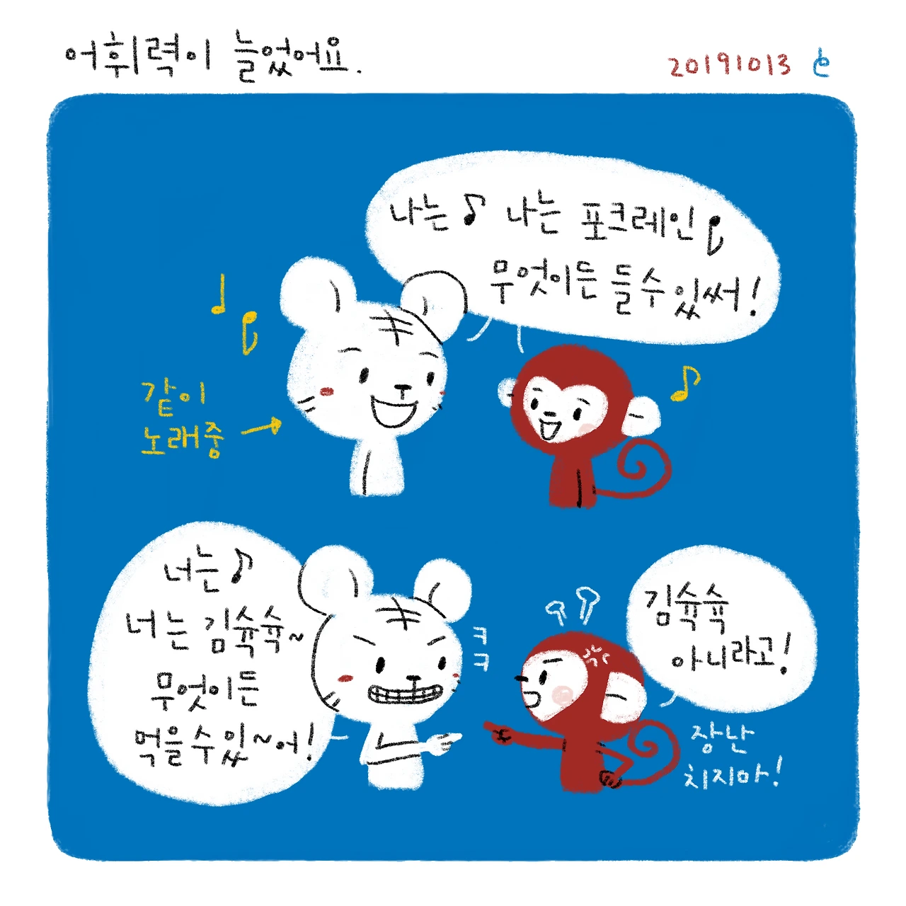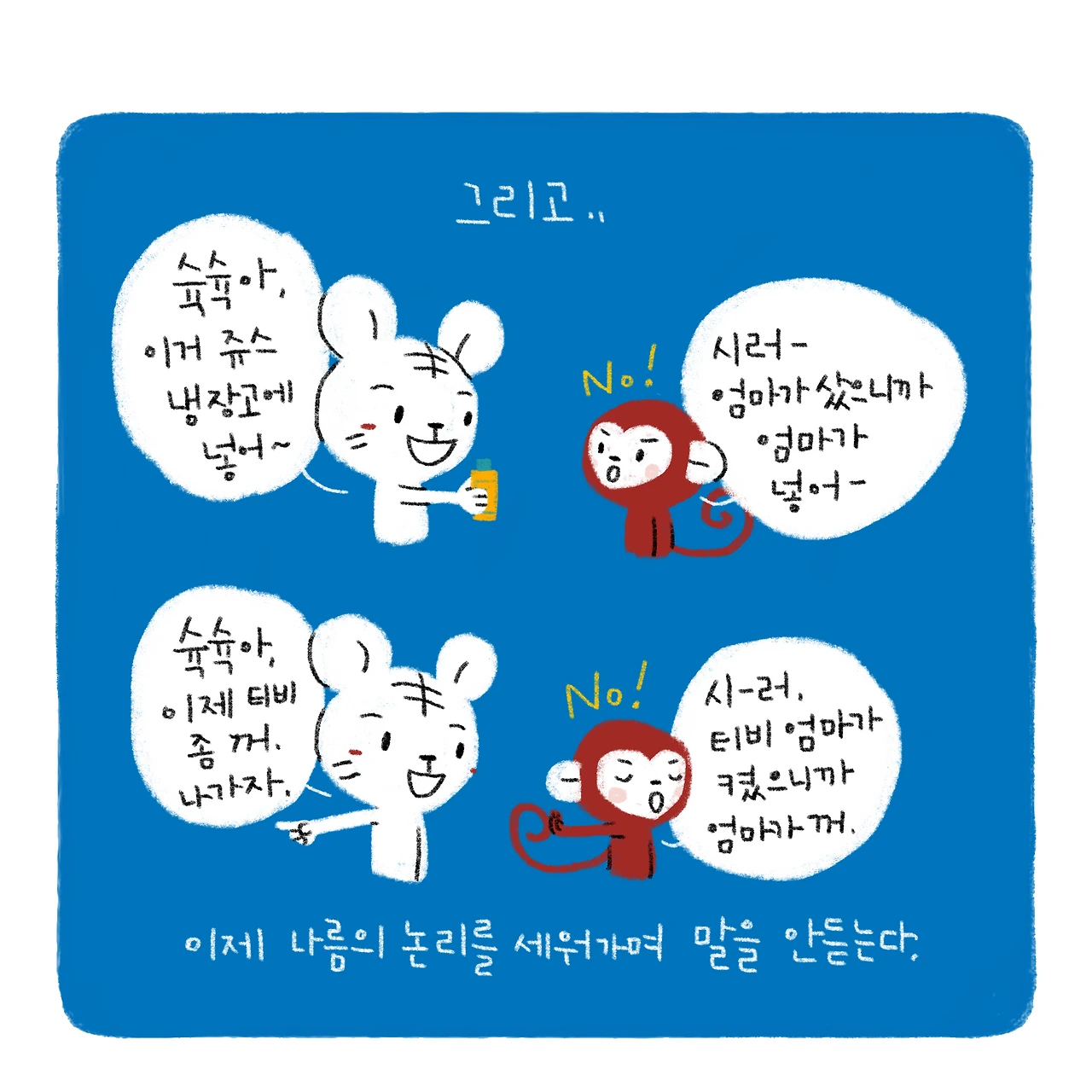 얼마 전까지만 해도 말 몇마디 하는 것도 신기했는데, 이 어휘력 무엇..?이제 진짜 말조심해야하겠다고 느낀다..-#블루챔버 #bluechamber #그림일기 #육아일기 #일상툰 #남매맘 #애둘맘 #36개월어린이 #어휘력이늘었어요