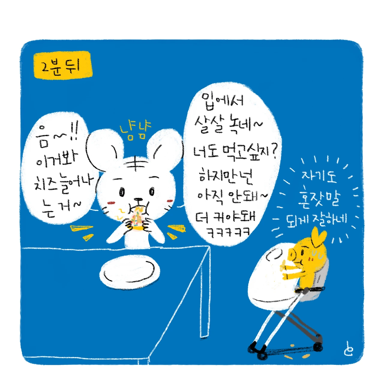 애 없던 시절엔 혼잣말 별로 안했었는데ㅠㅠ-#블루챔버 #bluechamber #그림일기 #육아일기 #일상툰 #남매맘 #애둘맘 #37개월어린이 #7개월아기 #혼잣말먹방