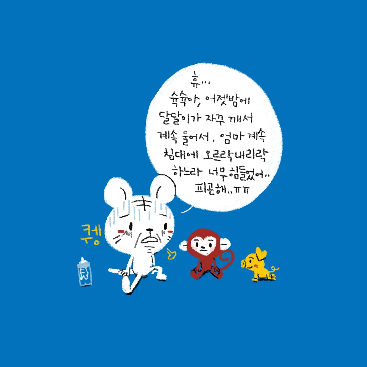 깜짝 놀랐네..!-#블루챔버 #bluechamber #그림일기 #육아일기 #일상툰 #남매맘 #애둘맘 #37개월어린이 #8개월아기 #달달이의옹알이