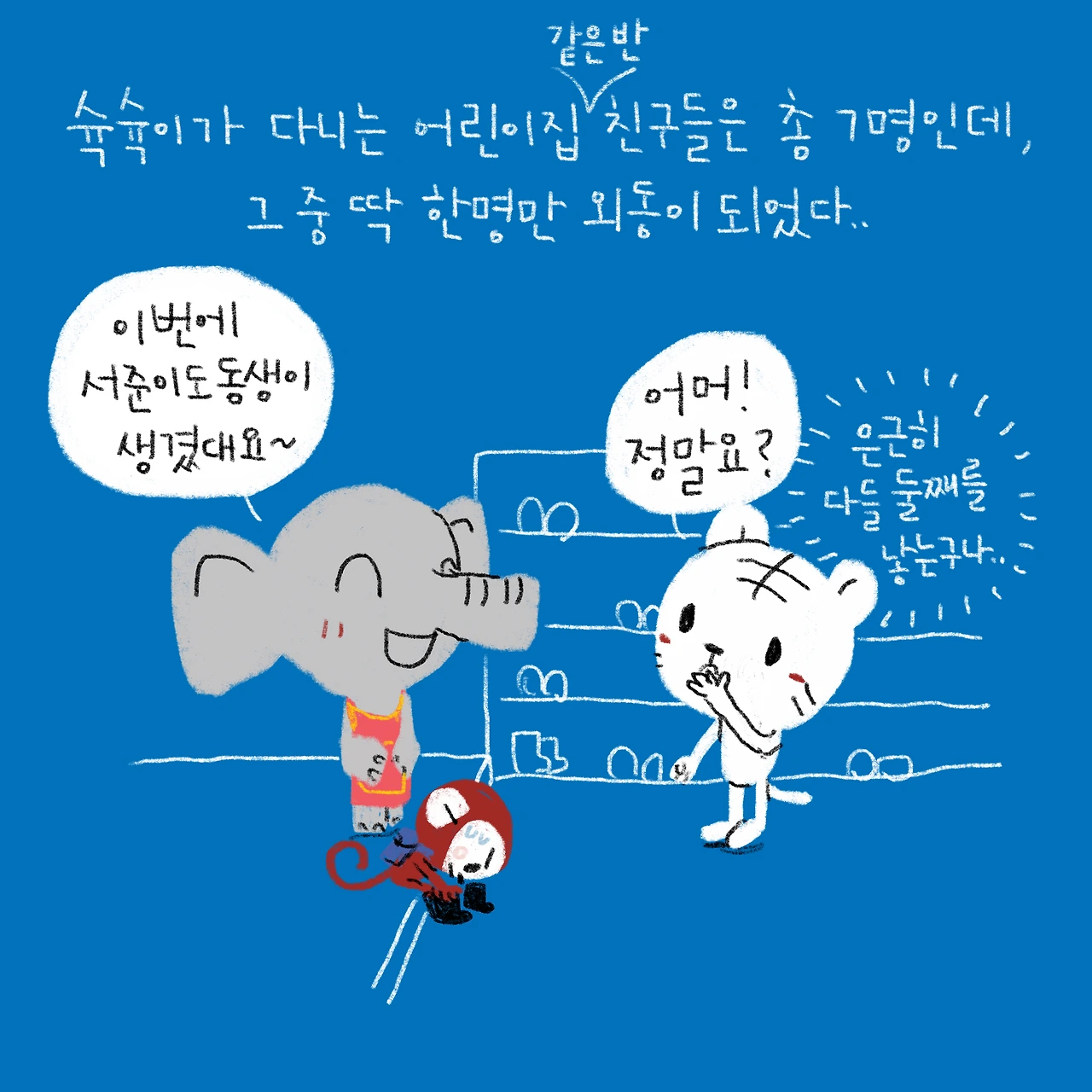 요즘 쫌 웃긴다, 너~~~?작년 3월에 어린이집 입소할 때까지만 해도 반에 7명중 3명만 형제자매가 있었는데, 어느새 다들 동생이 생기는 걸 보니 뭔가 신기하다.아이들에겐 1-2년 사이에 생기는 변화가 참 크겠구나.-#블루챔버 #bluechamber #그림일기 #육아일기 #일상툰 #남매맘 #애둘맘 #39개월어린이 #10개월아기 #슉슉이요즘쫌웃긴다