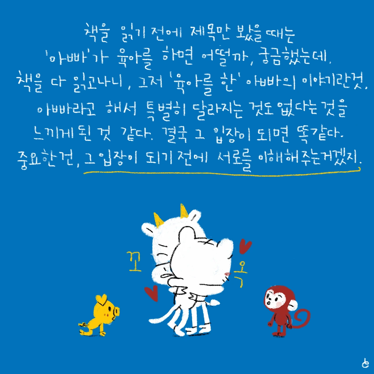 그게 엄마든 아빠든 할머니가 되든, 오로지 혼자서 ‘독박육아’를 해봐야 알 수 있는 그 ‘힘듦’이 있다.