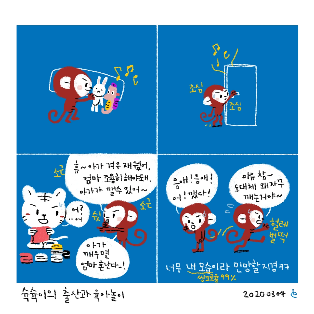 자식은 부모의 거울...나도 어렸을 적에 친구와 인형놀이하면 꼭 결혼식 하다가 중간에 아이고 배야 하면서 애기 낳는 씬을 꼭 넣었었는데 ㅋㅋㅋㅋㅋ 아이들에게 애 낳는 부분은 흥미로운 장면인가보다ㅋㅋ-#블루챔버 #bluechamber #그림일기 #육아일기 #일상툰 #남매맘 #애둘맘 #40개월어린이 #11개월아기 #슉슉이의출산과육아놀이