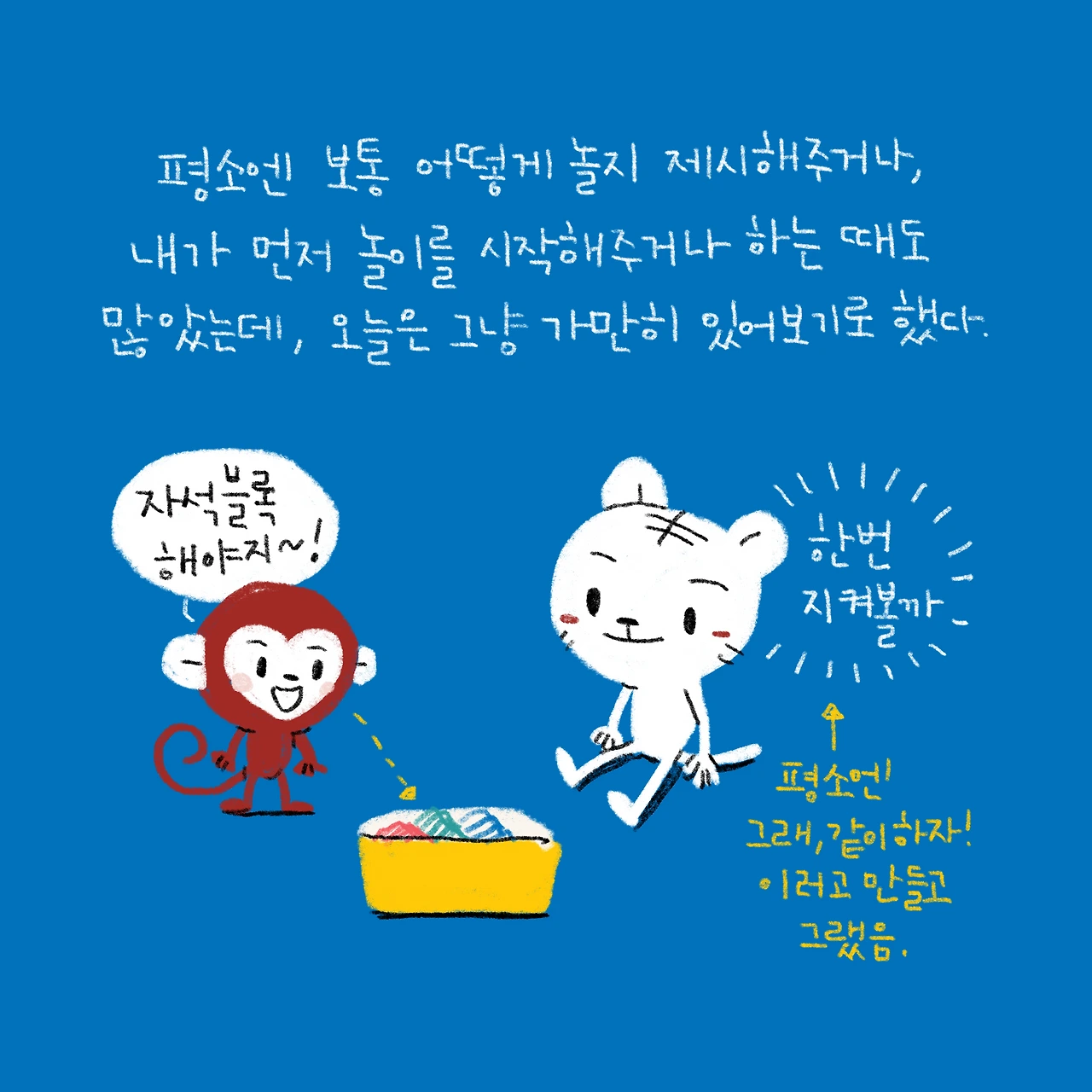 놀아주는 건 중요하지만, 놀아주는 ‘나’에게 너무 심취하지 말 것.오늘의 다짐.-#블루챔버 #bluechamber #그림일기 #육아일기 #일상툰 #남매맘 #애둘맘 #41개월어린이 #11개월아기 #놀이에대한고찰