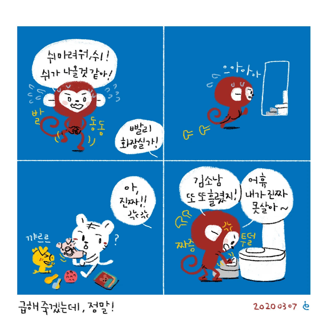 슉슉이가 요즘 짜증을 잘 내는데...그건 내 탓인걸까, 소남이 탓인걸까-#블루챔버 #bluechamber #그림일기 #육아일기 #일상툰 #남매맘 #애둘맘 #41개월어린이 #11개월아기 #급해죽겠는데정말