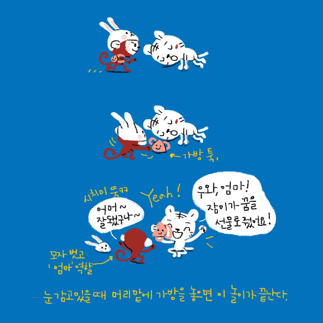 잘 안자려고 할땐, ‘넌 잠이 만나지마~ 내가 먼저 잠이 만나야지!’ 이러면 안된다고 후다닥 자려합니다.