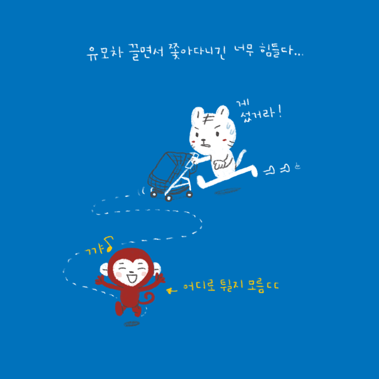유모차 끌면서 쫓아다니기