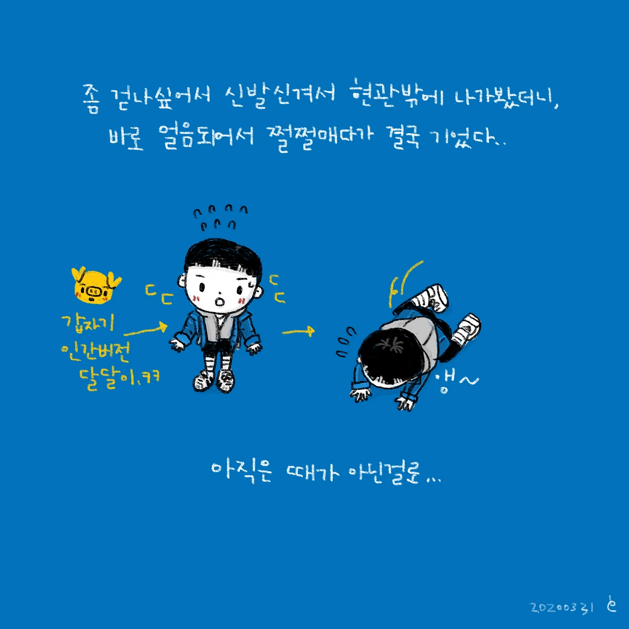 슉슉이도 처음에 그랬었는데, 달달이 덕분에 기억이 새록새록!(달달이 쌍가마(..)을 그리고 싶어서 인간버전을;;ㅋㅋ)-#블루챔버 #bluechamber #그림일기 #육아일기 #일상툰 #남매맘 #애둘맘 #41개월어린이 #12개월아기 #돌끝맘 #아직은신발이무서워