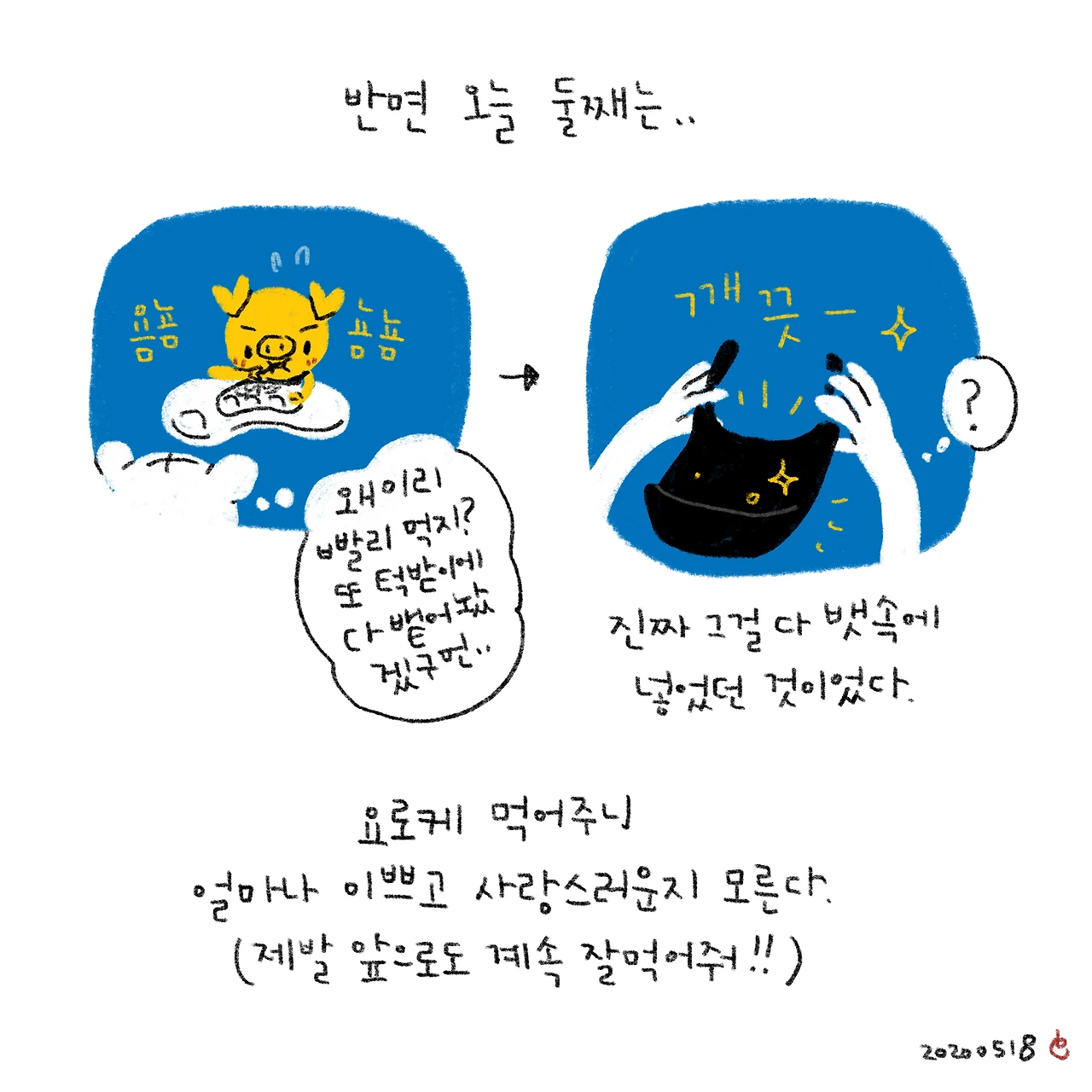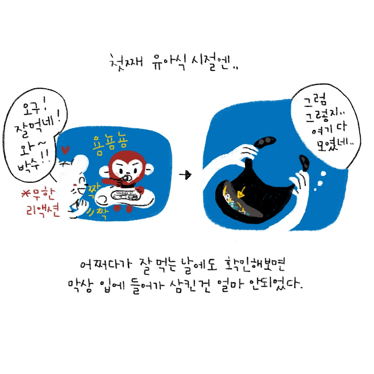 한동안 밥 먹이기 슬럼프가 와서 둘 다 떠먹여주다가 오늘 간만에 식판식으로 먹였더니 너무 잘먹어서 깜놀!진짜 밥 잘먹는 아기.. 최고된다..더 이상 바랄게 없다-#블루챔버 #bluechamber #그림일기 #육아일기 #일상툰 #남매맘 #애둘맘 #43개월어린이 #13개월아기 #밥잘먹는둘째