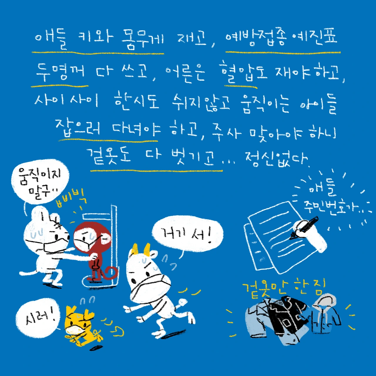 #블루챔버 #bluechamber #그림일기 #육아일기 #일상툰 #남매맘 #애둘맘 #48개월어린이 #18개월아기 #2살아기 #5살어린이 #독감주사 #예방접종