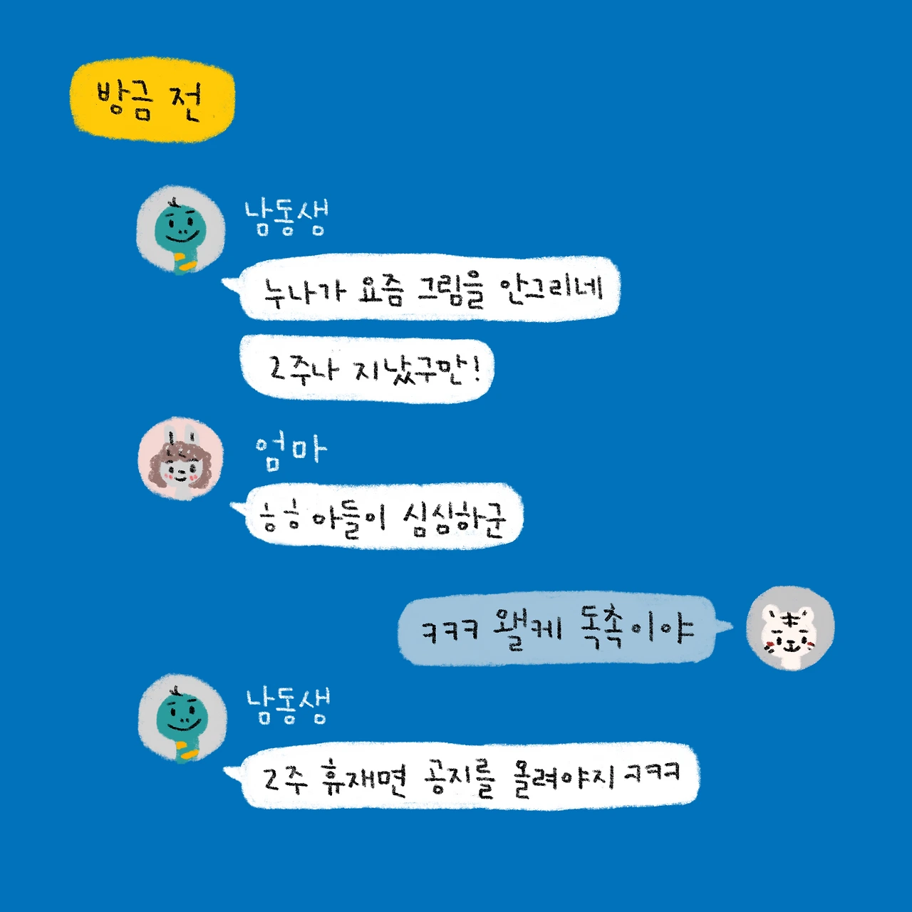 올렸다 됐냐 동생놈아!!!ㅋㅋㅋㅋㅋㅋㅋㅋㅋ사실 좀 그릴까 할 때면 애플펜슬 충전이 안되어있어서...(핑계)-#블루챔버 #bluechamber #그림일기 #육아일기 #일상툰 #남매맘 #애둘맘 #48개월어린이 #19개월아기 #2살아기 #5살어린이 #남동생의독촉