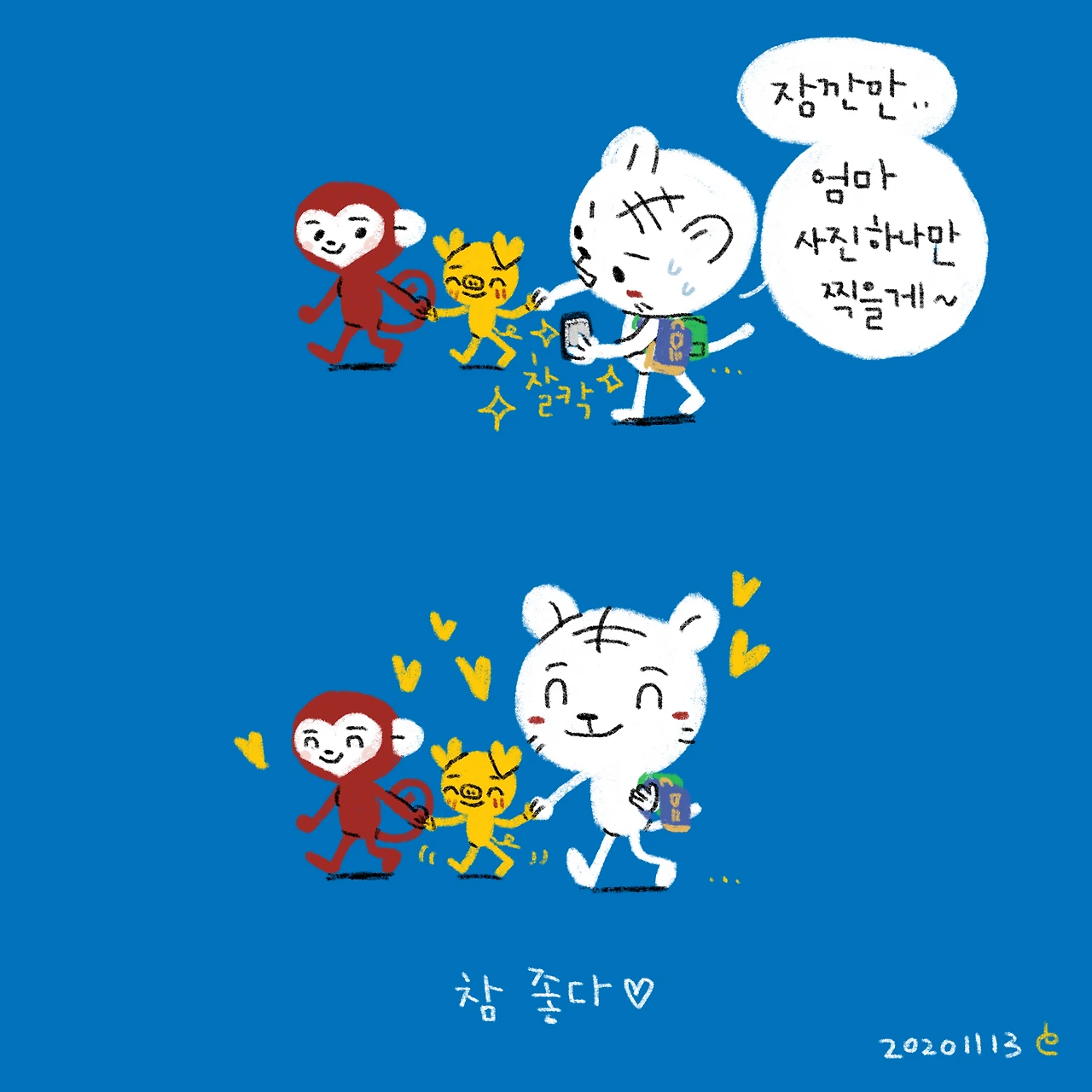 이게 뭐라고 이렇게 행복한가요..둘이 손 잡은 것도 찍고 싶었는데 달달이가 너무 산만해서 실패-#블루챔버 #bluechamber #그림일기 #육아일기 #일상툰 #남매맘 #애둘맘 #49개월어린이 #19개월아기 #2살아기 #5살어린이 #손잡고걸어서등원