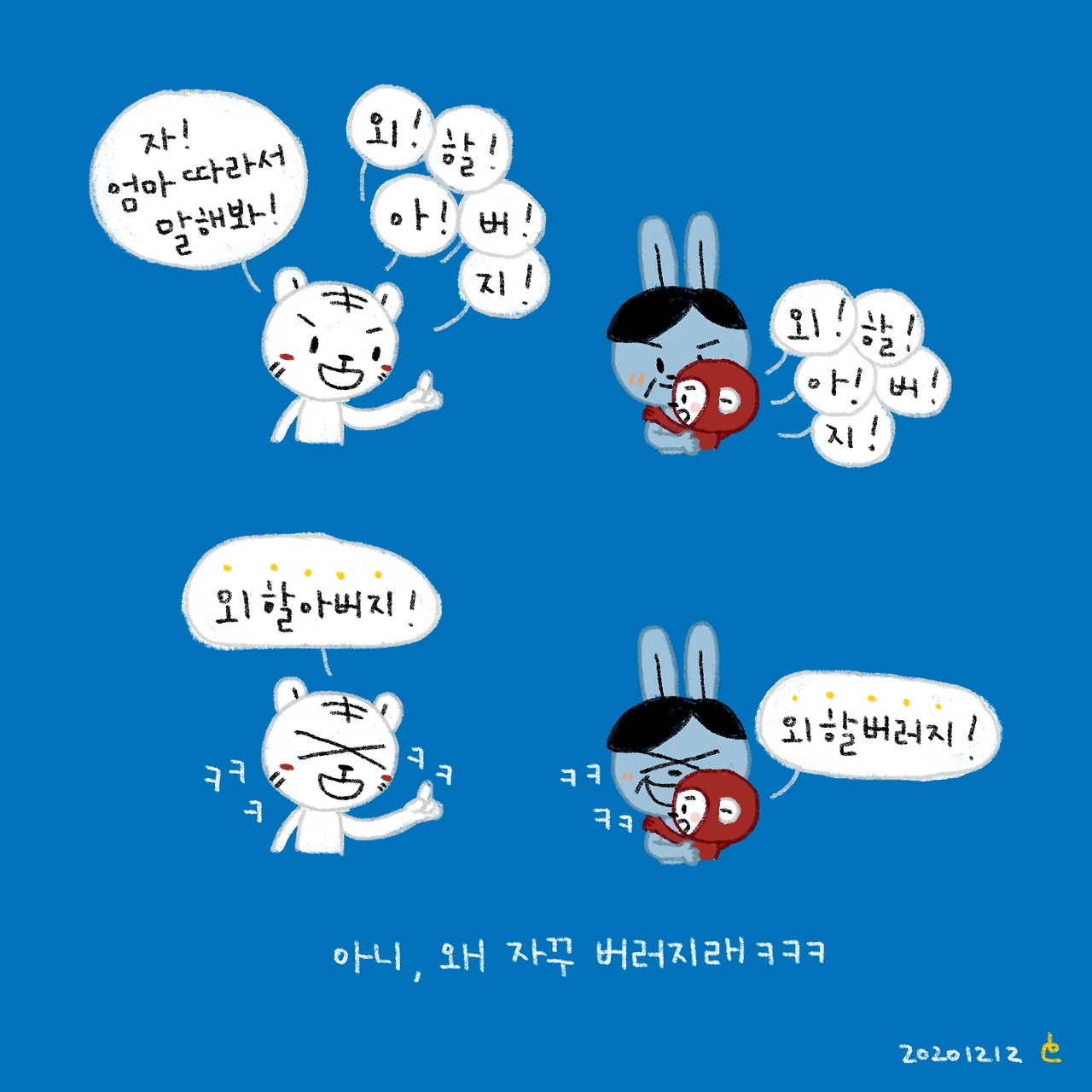 친가 외가 안가리고 공평하게 버러지라 한다....(...)자기도 자기가 말이 자꾸 그렇게 나오는거 알고 웃는데 왜 못바꾸는건지 ㅋㅋㅋㅋ-#블루챔버 #bluechamber #그림일기 #육아일기 #일상툰 #남매맘 #애둘맘 #50개월어린이 #20개월아기 #2살아기 #5살어린이 #할버러지