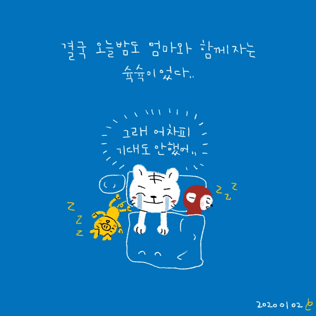 언제쯤 나 혼자 잘 수 있을까..?혼자 못잔지 어느덧 1500일이 넘어간다..-#블루챔버 #bluechamber #그림일기 #육아일기 #일상툰 #남매맘 #애둘맘 #50개월어린이 #21개월아기 #3살아기 #6살어린이 #오늘아빠랑잘까?