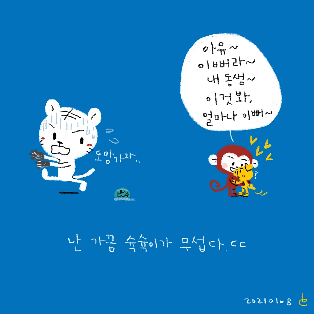 이제 좀 살만하니까 그런 소리 넣어둬..(저래놓고 몇 분 뒤엔 장난감 갖고 또 둘이 엄청 싸운다..)-#블루챔버 #bluechamber #그림일기 #육아일기 #일상툰 #남매맘 #애둘맘 #51개월어린이 #21개월아기 #3살아기 #6살어린이 #갑자기