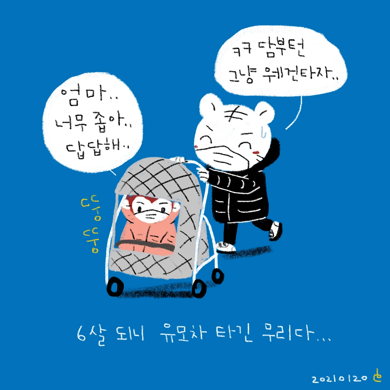 패딩 입어서 그런가 안에 집어넣기 더 힘들었다ㅋㅋ계속 이게 머선 일이고 이러면서 집어넣음..ㅋㅋㅋ이제 진짜 슉슉이는 유모차 졸업해야겠다ㅋㅋ-#블루챔버 #bluechamber #그림일기 #육아일기 #일상툰 #남매맘 #애둘맘 #51개월어린이 #21개월아기 #3살아기 #6살어린이 #유모차는이젠안된다