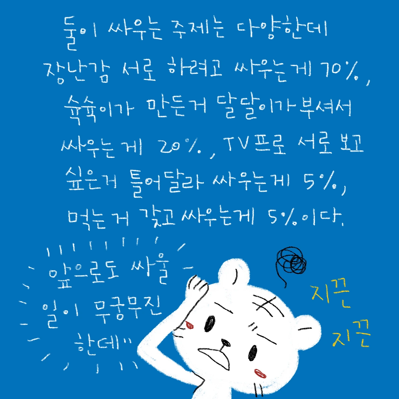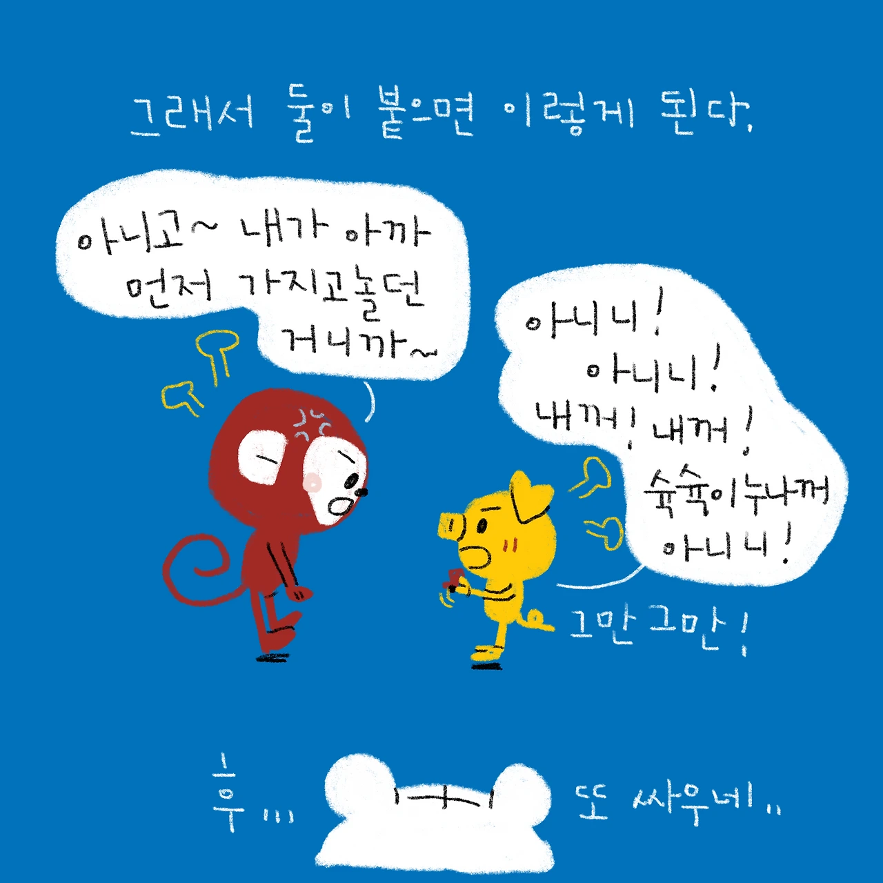 나중에 초딩쯤 되면 둘이 살벌하게 싸울까봐 무섭..사춘기 때는 어차피 서로 무관심해질것 같고.(내가 바로 3살 차이 남매 유경험자. 어릴때 남동생과 싸운 전적 꽤 많음)-#블루챔버 #bluechamber #그림일기 #육아일기 #일상툰 #남매맘 #애둘맘 #52개월어린이 #22개월아기 #3살아기 #6살어린이 #이젠말로도잘싸우는남매