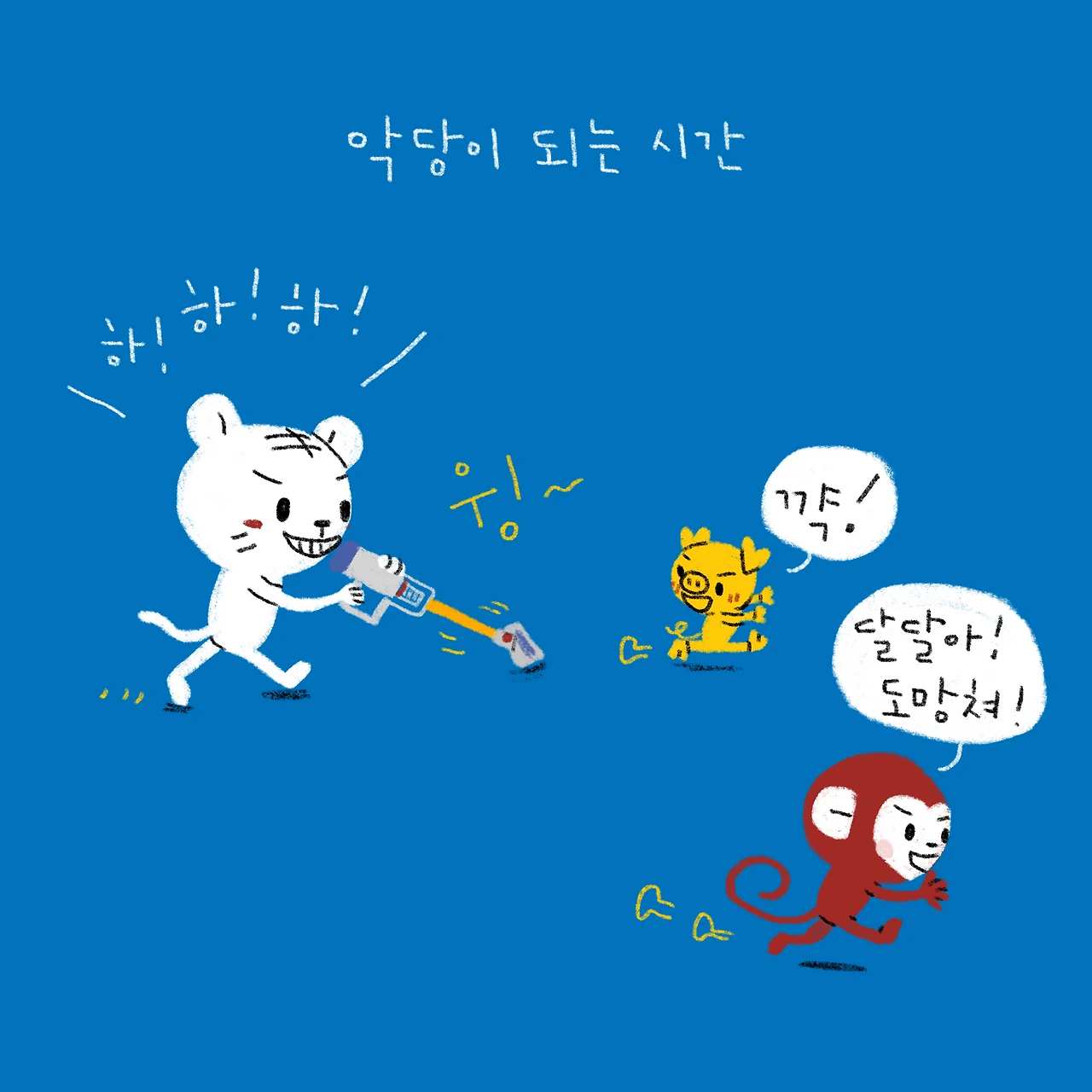 이제 하! 하! 하! 만 하면 자동으로 도망감. - #블루챔버 #bluechamber #그림일기 #육아일기 #일상툰 #남매맘 #애둘맘 #52개월어린이 #22개월아기 #3살아기 #6살어린이 #악당이되는시간