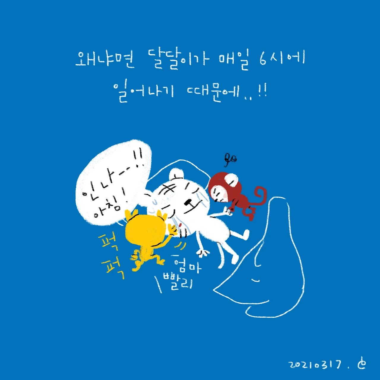 #블루챔버 #bluechamber #그림일기 #육아일기 #일상툰 #남매맘 #애둘맘 #53개월어린이 #23개월아기 #3살아기 #6살어린이 #7시알람을삭제했다