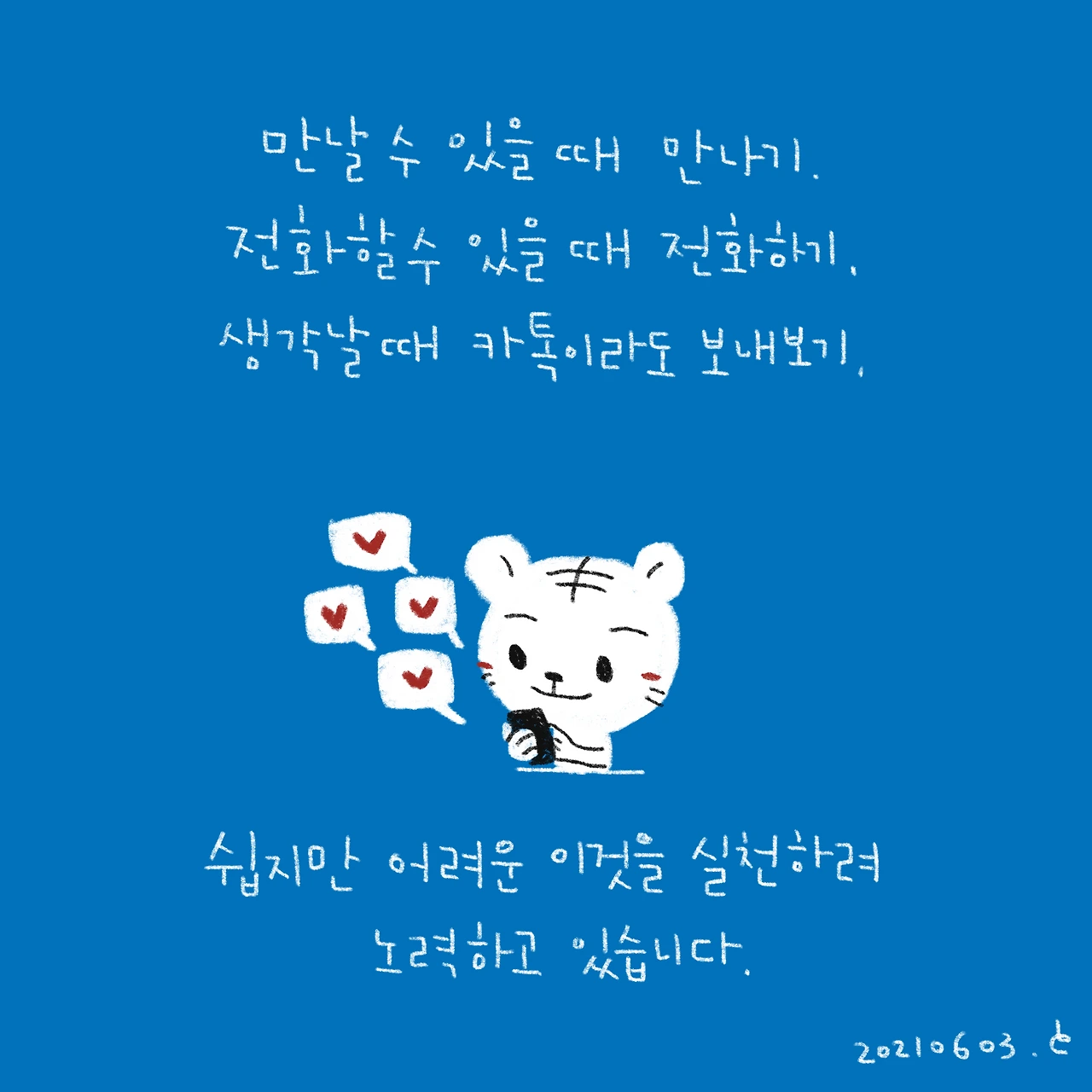 주변에 있는 소중한 사람들한테 먼저 다가가야지, 오늘도 다짐해봅니다.(아직 미처 연락 못한 사람도 많아요)
