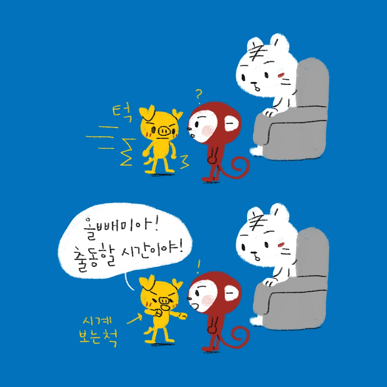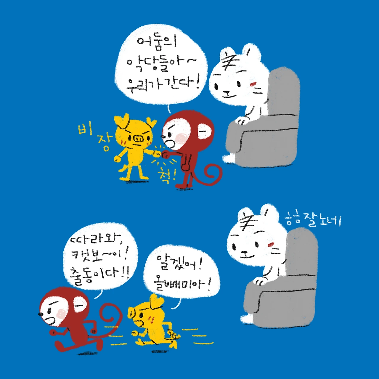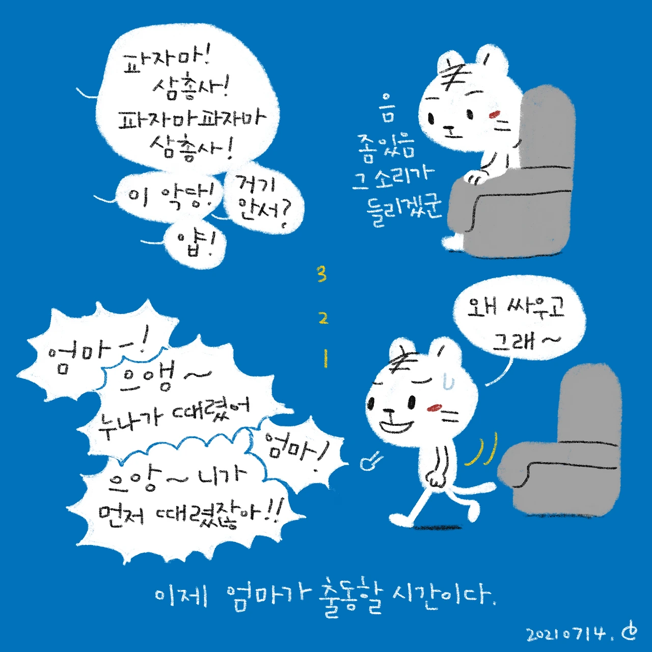 소띠 아빠, 호랑이띠 엄마, 원숭이띠 딸, 돼지띠 아들. 소소한 육아와 일상 이야기를 그리고 있습니다.