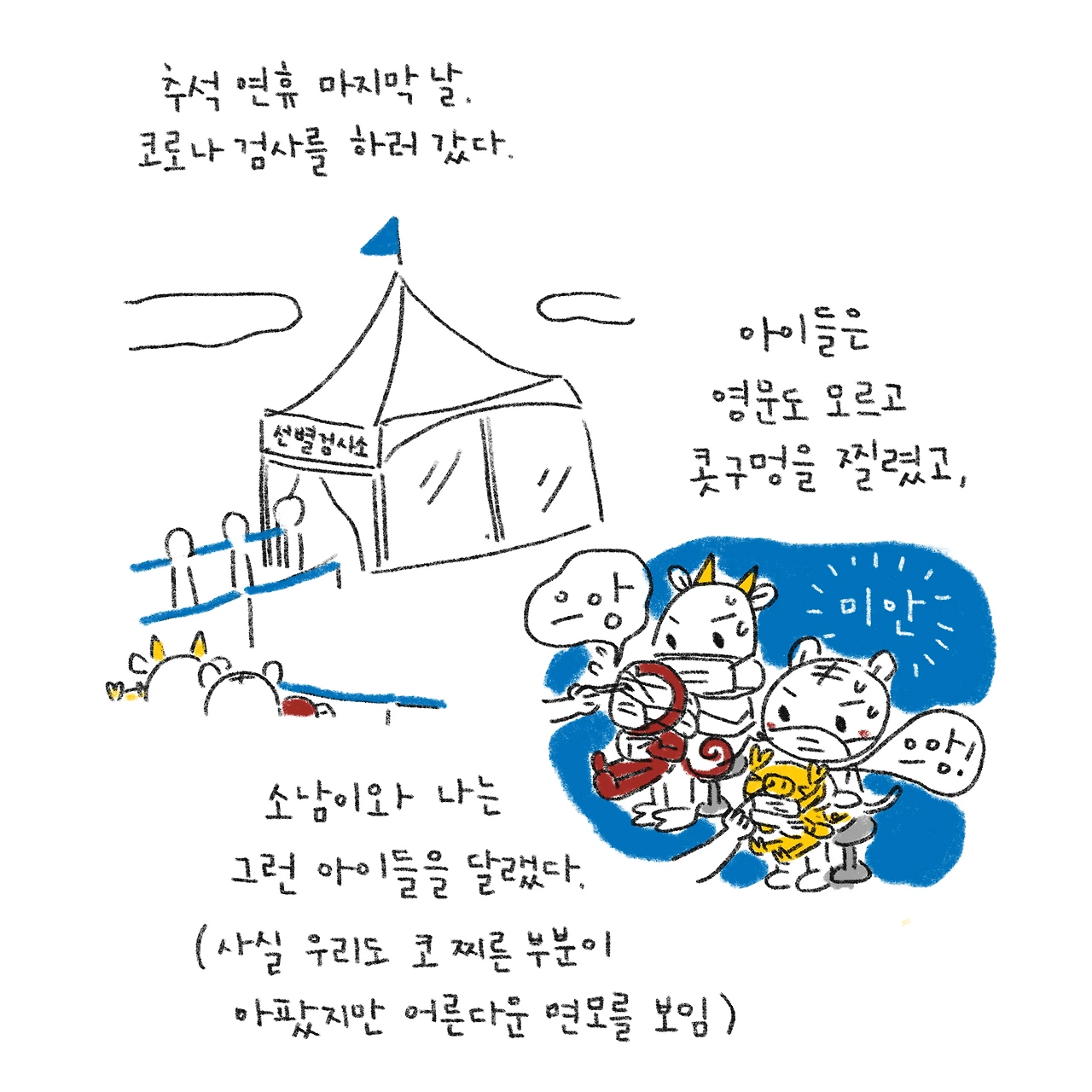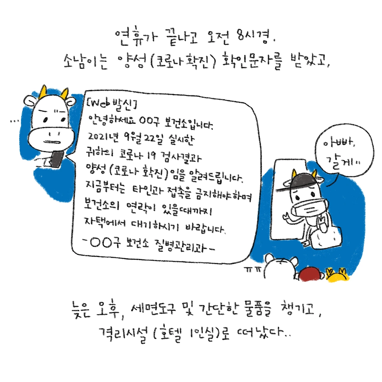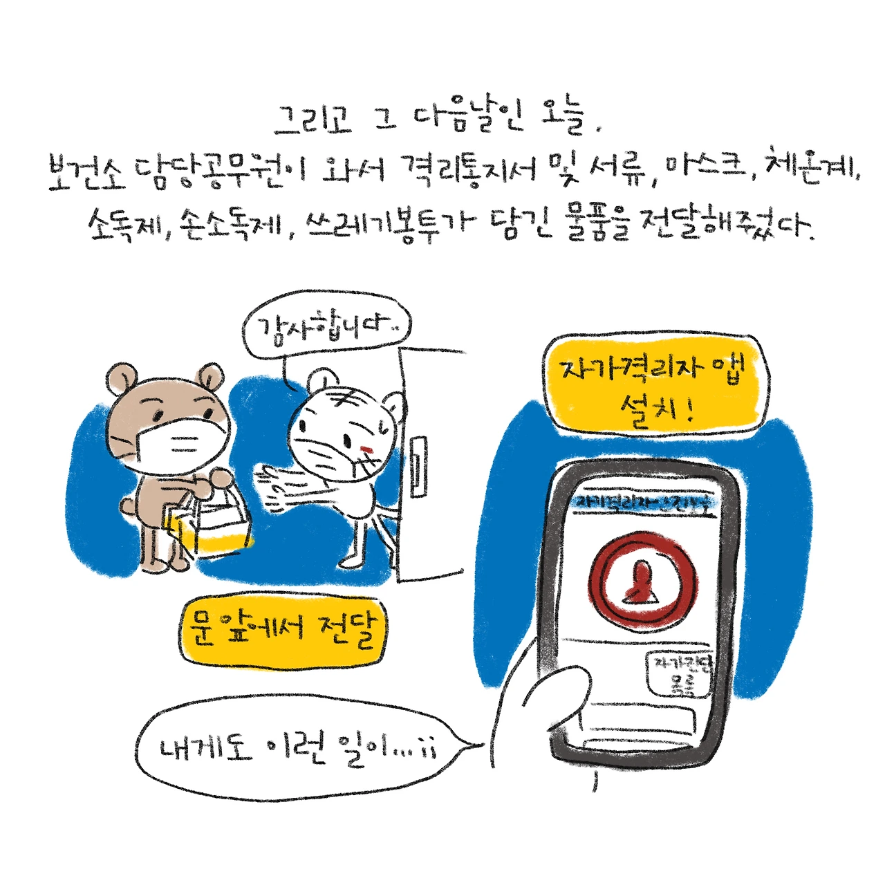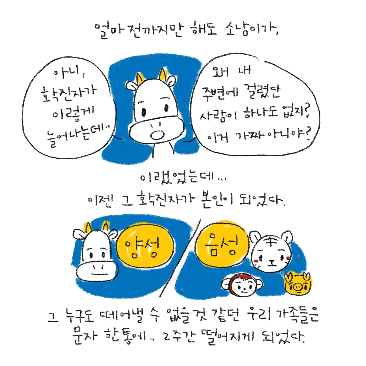 #코로나19 #확진자 #확진자동거인 #세상에이럴수가 #별별경험다해보네 #블루챔버 #그림일기 #이건안그릴수가없었다
