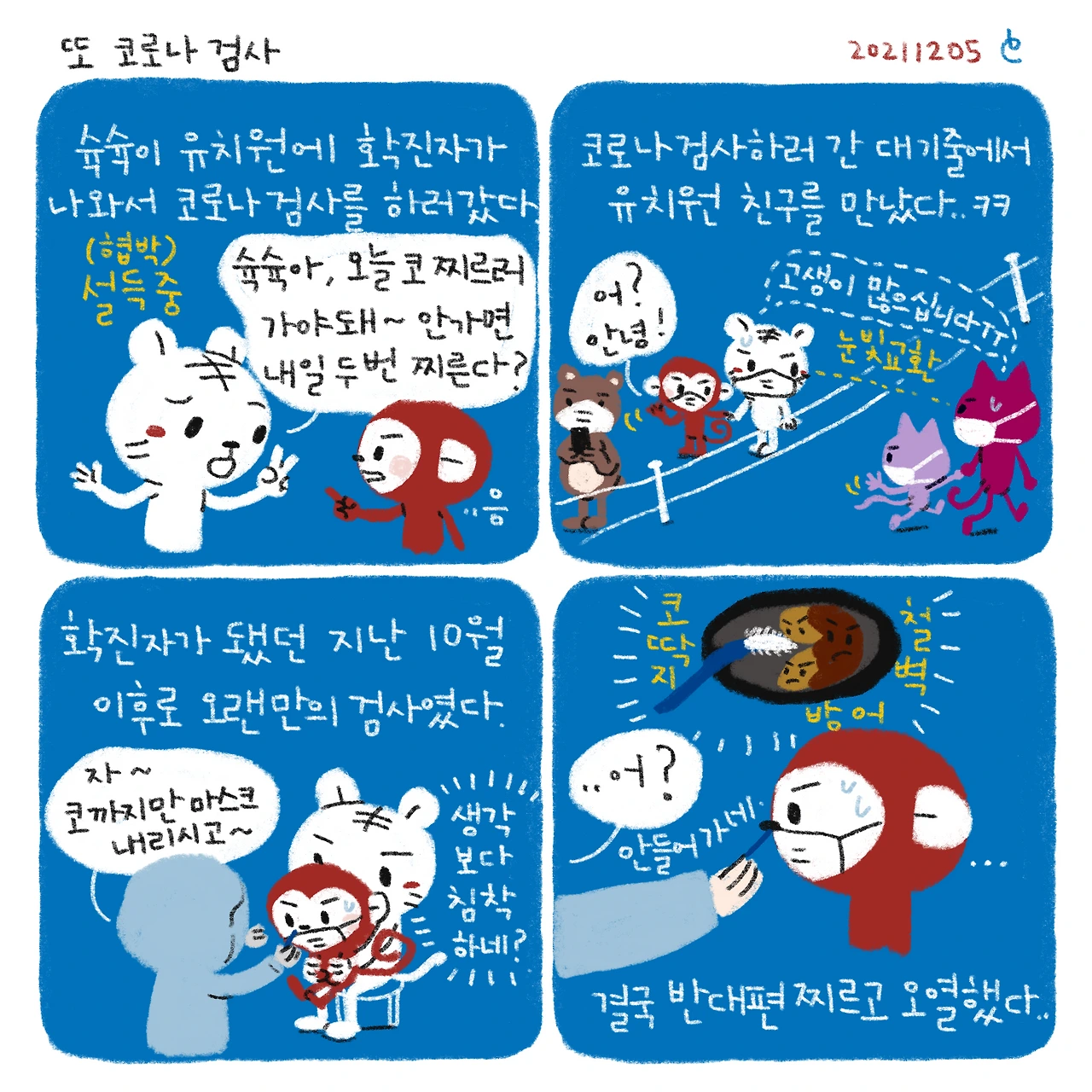 #블루챔버 #그림일기 #육아일기 #일상툰 #남매맘 #애둘맘 #62개월어린이 #32개월아기 #3살아기 #6살어린이 #또코로나검사