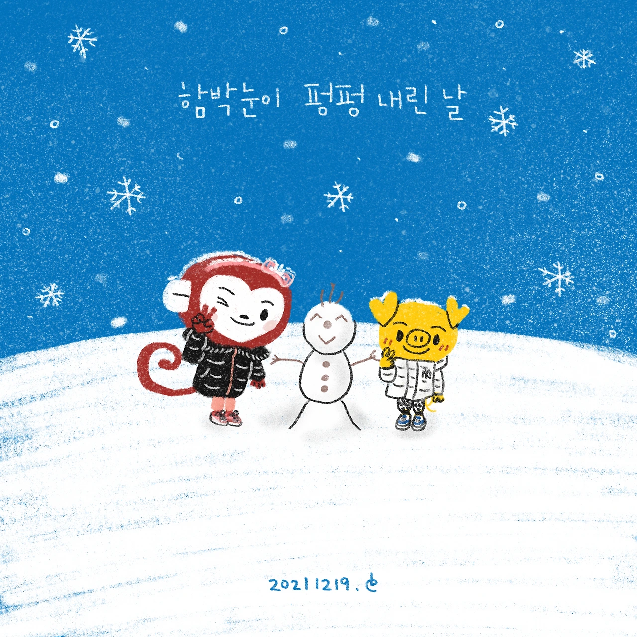 #블루챔버 #그림일기 #육아일기 #일상툰 #남매맘 #애둘맘 #62개월어린이 #32개월아기 #3살아기 #6살어린이 #함박눈이펑펑내린날