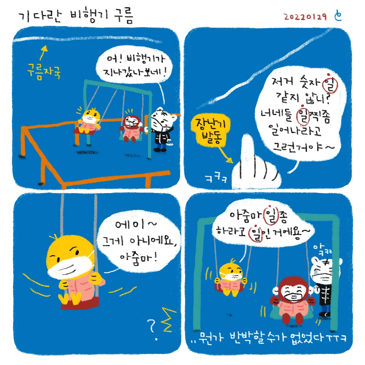 #블루챔버 #그림일기 #육아일기 #일상툰 #남매맘 #애둘맘 #63개월어린이 #34개월아기 #4살아기 #7살어린이 #기다란비행기구름
