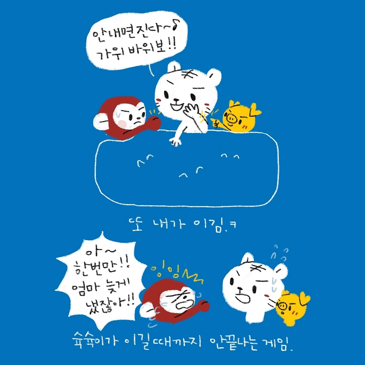 #블루챔버 #그림일기 #육아일기 #일상툰 #남매맘 #애둘맘 #67개월어린이 #38개월아기 #4살아기 #7살어린이 #가위바위보할때네살달달이가한말 #가위바위보 #말실수