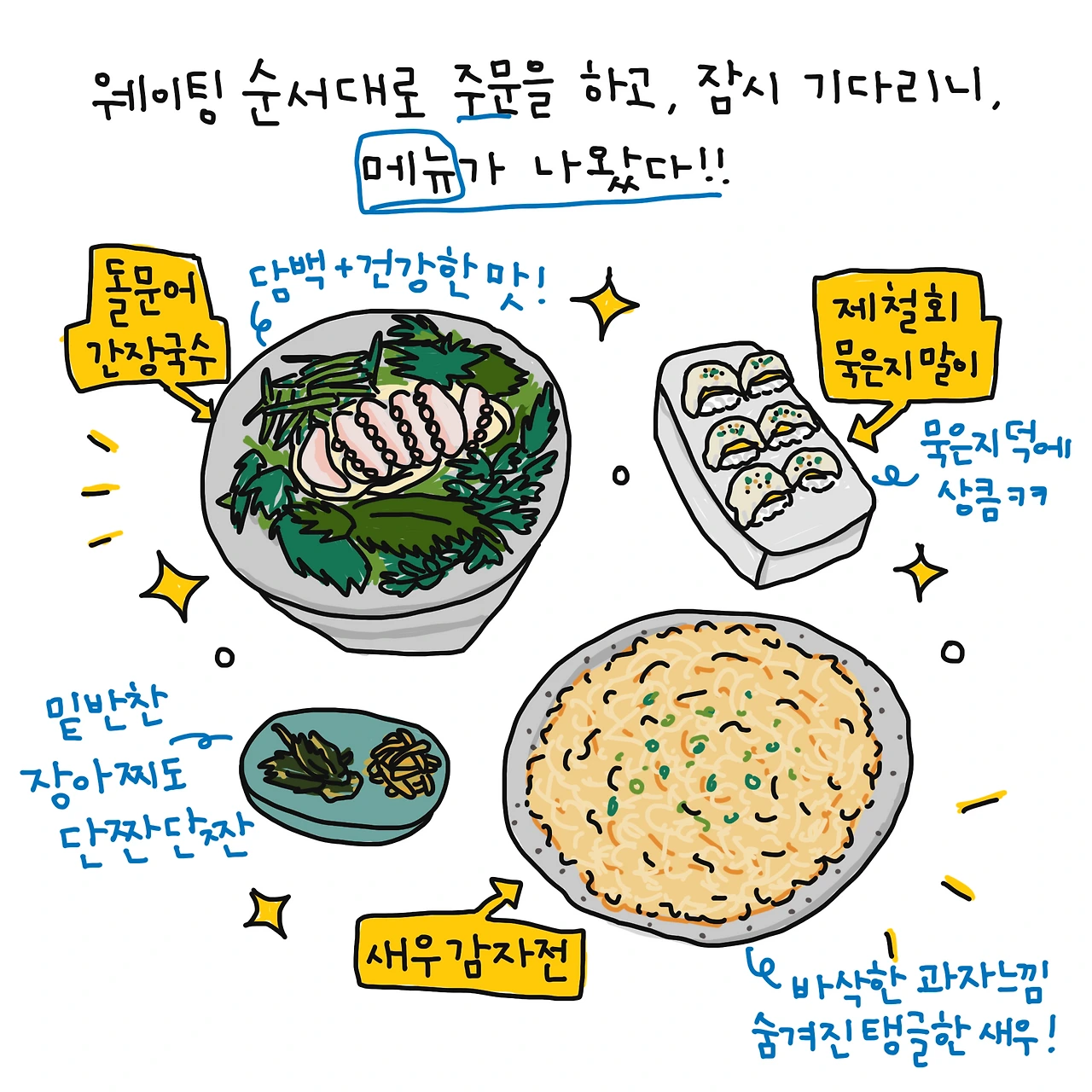 #돌문어간장국수 #제철회묵은지말이 #새우감자전 #성수난포 #난포 #성수동맛집 #서울숲맛집 #한식맛집 #파라노리 #먹방 #맛집 #파라노리의먹는이야기 #음식툰 #일상툰 #먹방일기