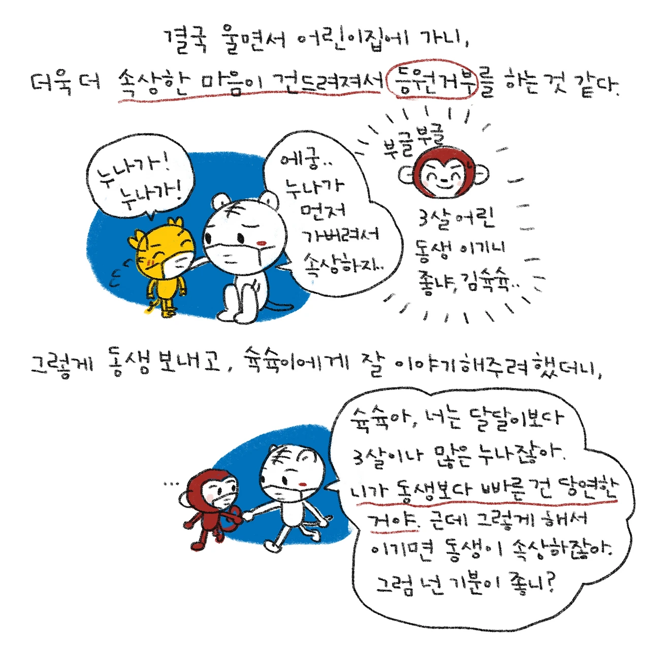 #블루챔버 #그림일기 #육아일기 #일상툰 #남매맘 #애둘맘 #70개월어린이 #40개월아기 #4살아기 #7살어린이 #계속되는둘째의등원거부 #등원거부
