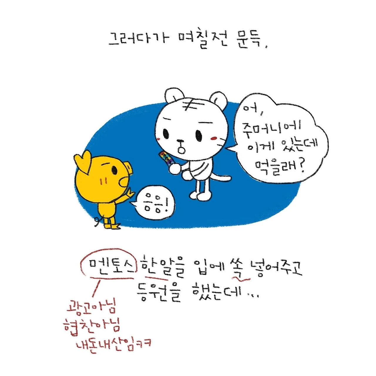 #블루챔버 #그림일기 #육아일기 #일상툰 #남매맘 #애둘맘 #71개월어린이 #41개월아기 #4살아기 #7살어린이 #등원거부해결 #이게되네 #어이없다 #멘토스